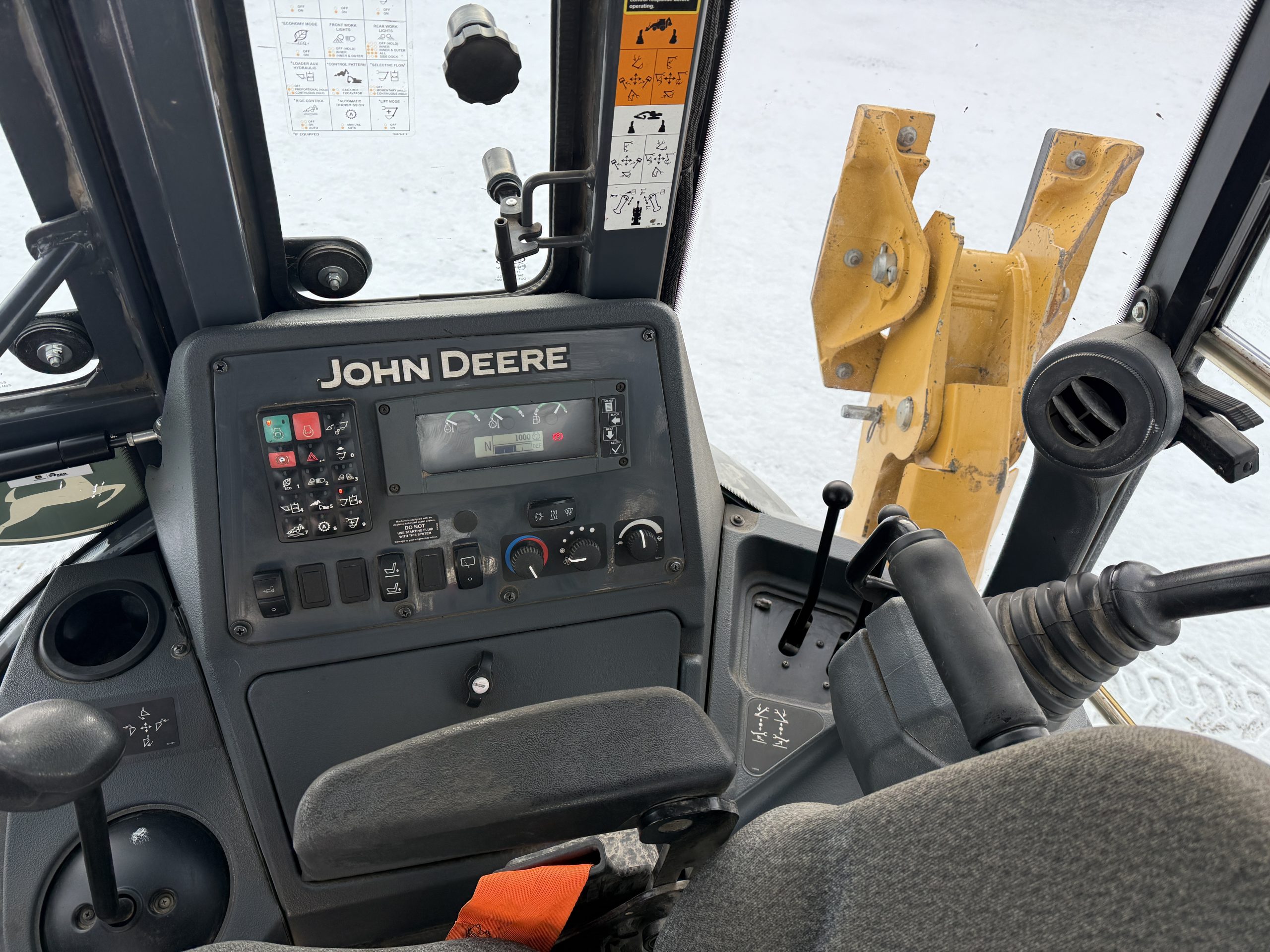 1589 hours, cab, AC, 4×4, extendahoe rear auxiliary, ride control, JD extended warranty through 4/12/27