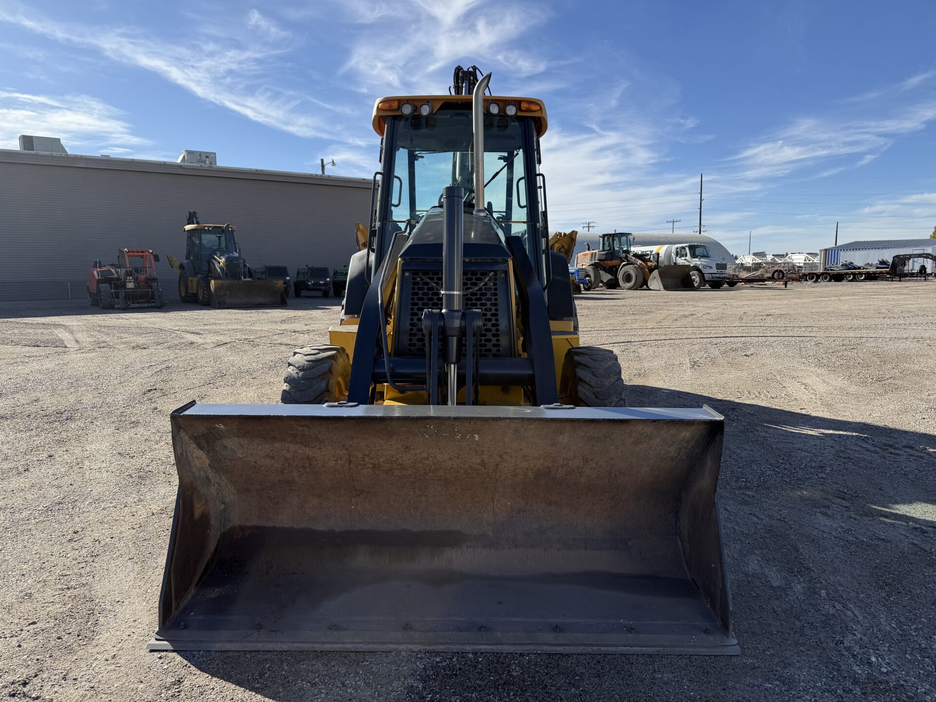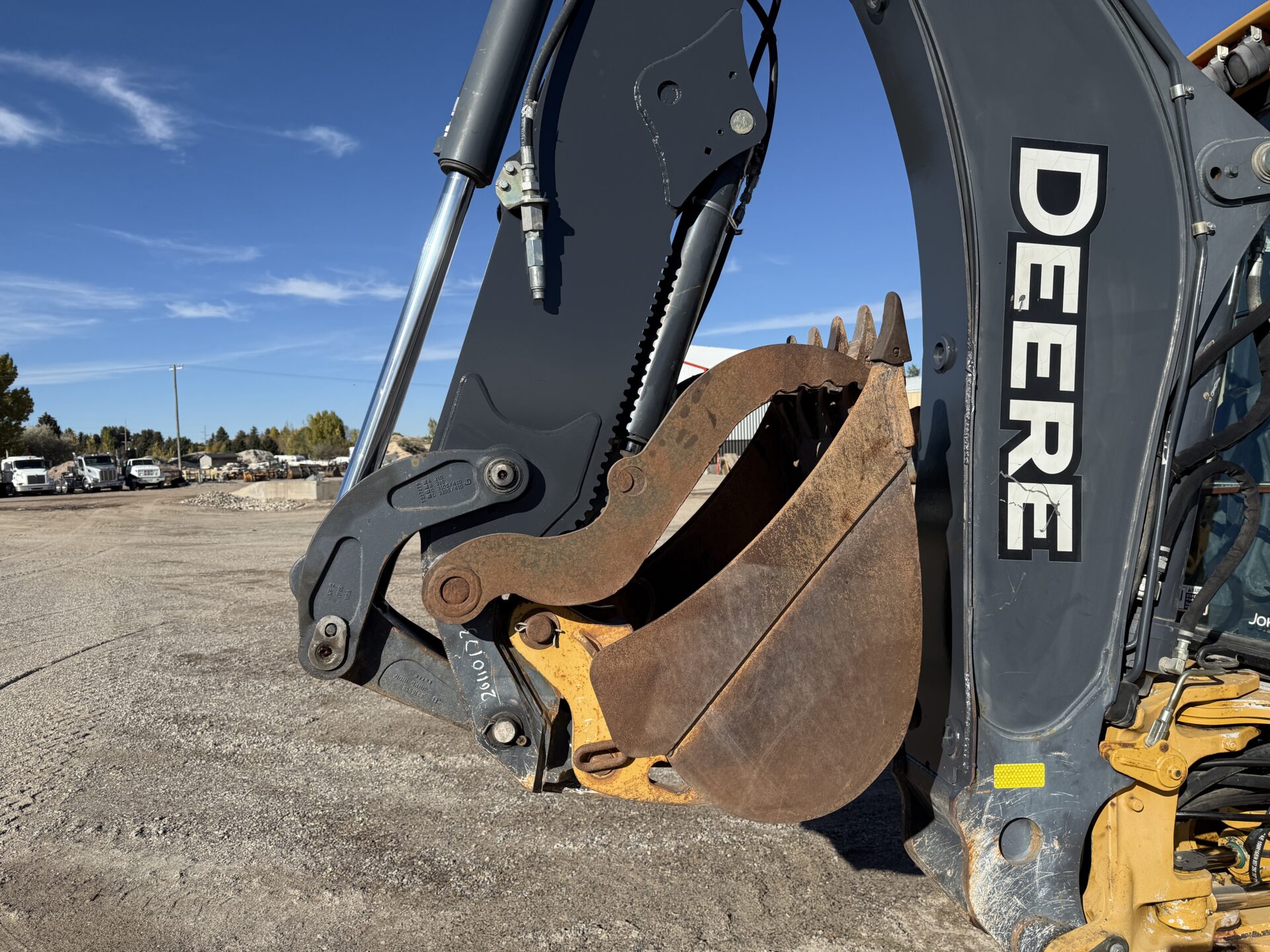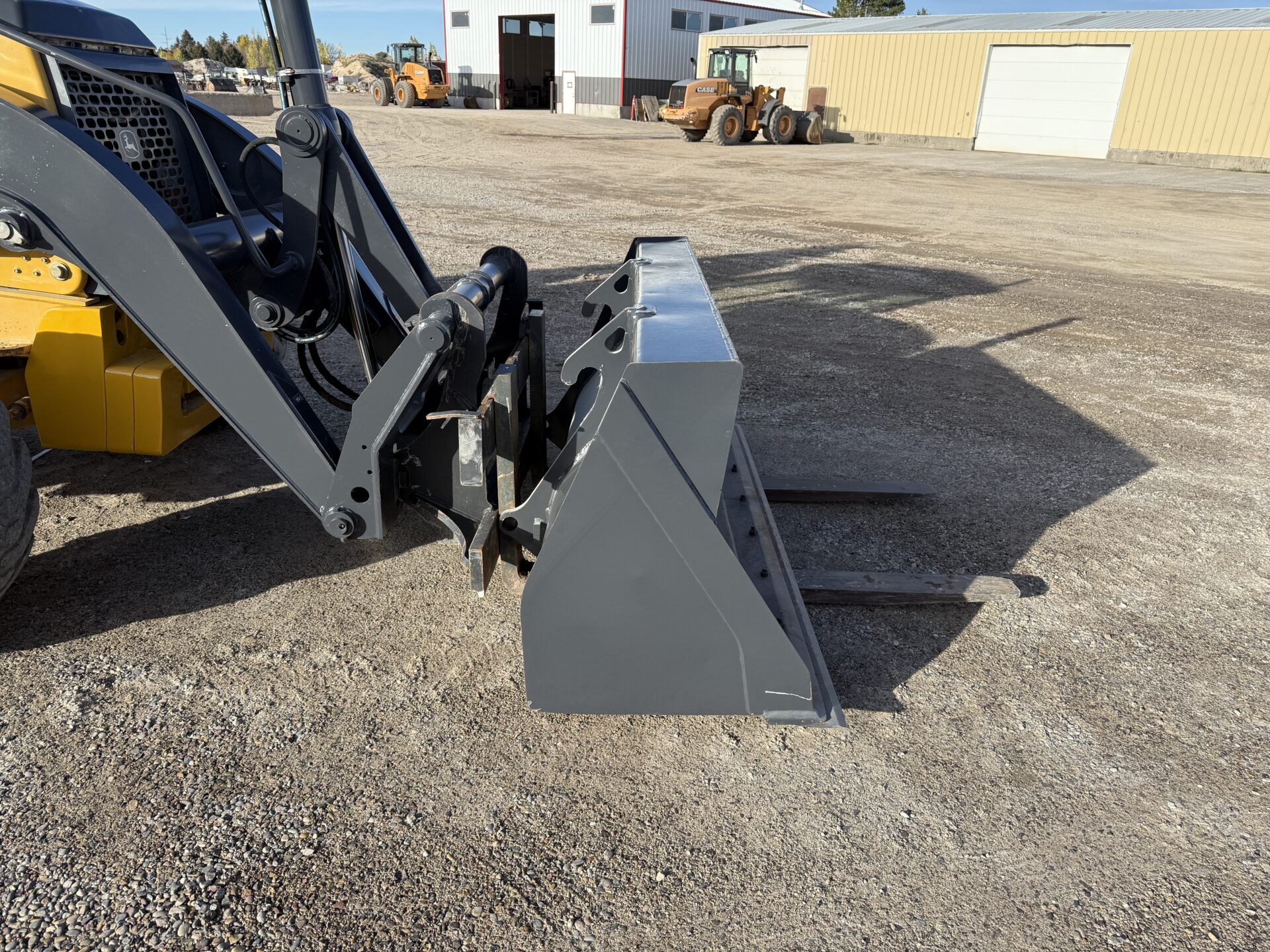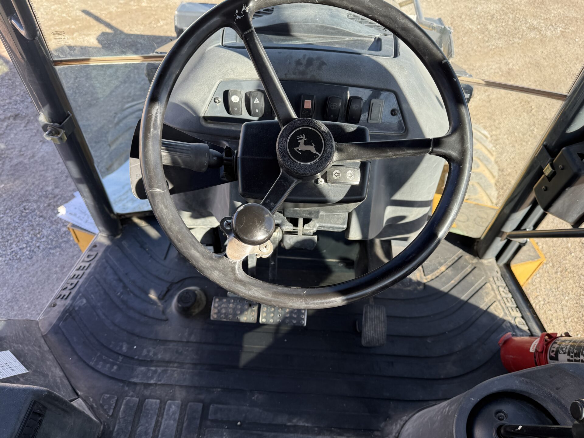 4,197 Hours, Enclosed Cab, Air Conditioner, Backhoe Pilot Controls, Powershift Transmission, Hydraulic Coupler, 92″ Loader Bucket, Forks, Extendable Stick, Quick Coupler, 24″ Backhoe Digging Bucket, Rear Auxiliary Hydraulics, Hydraulic Thumb