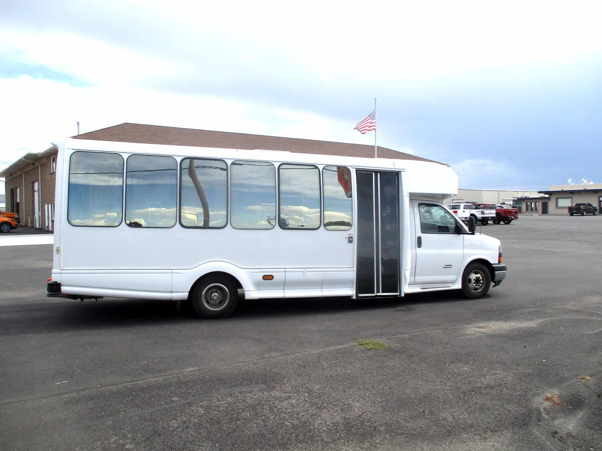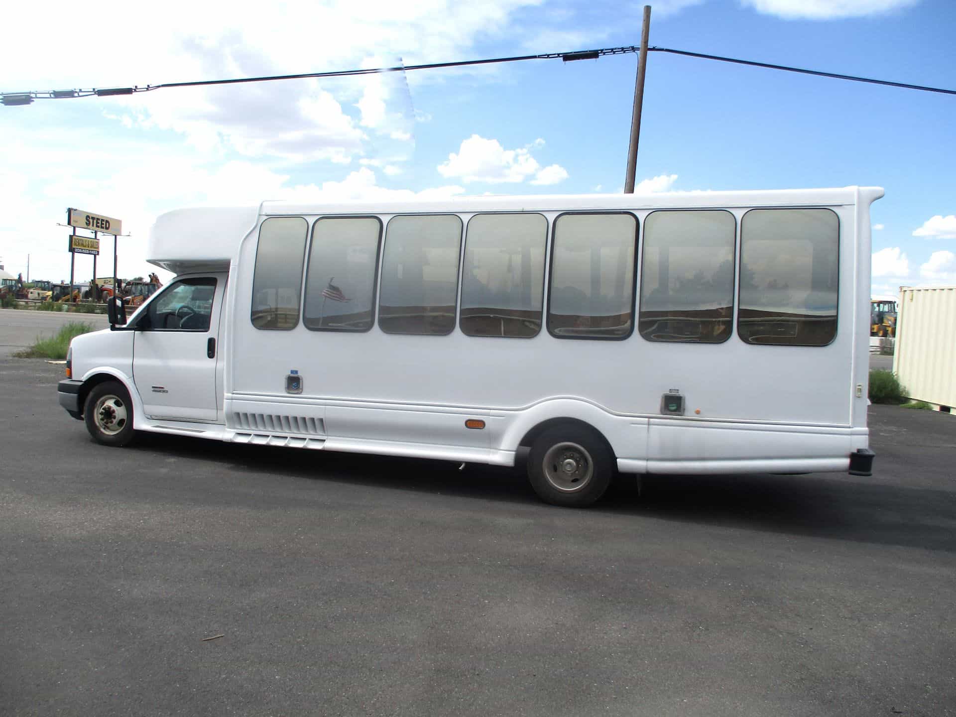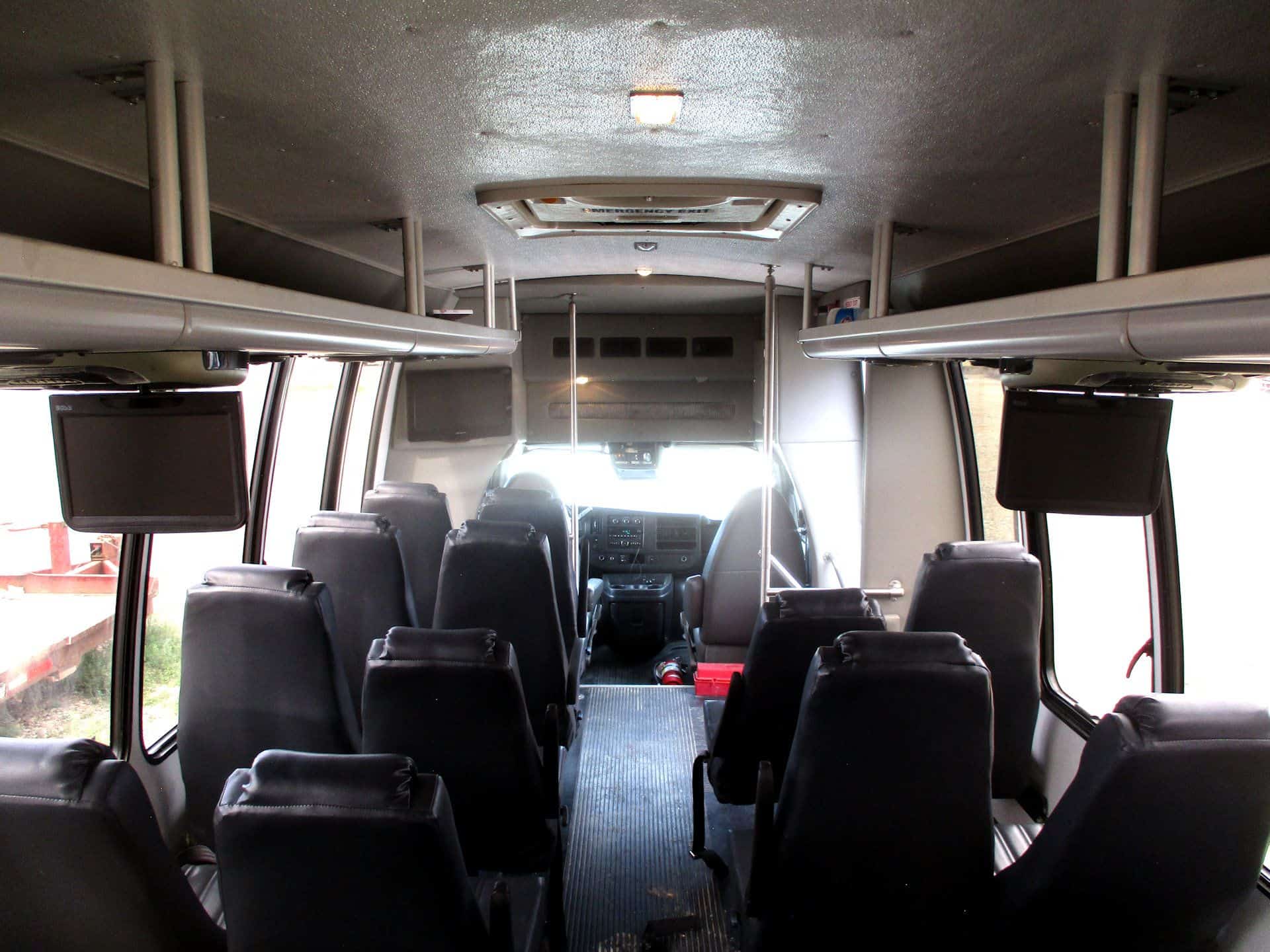 25 passenger bus, 68,575 miles, GMC 4500 chassis, 6.6L Duramax diesel, rear entertainment system