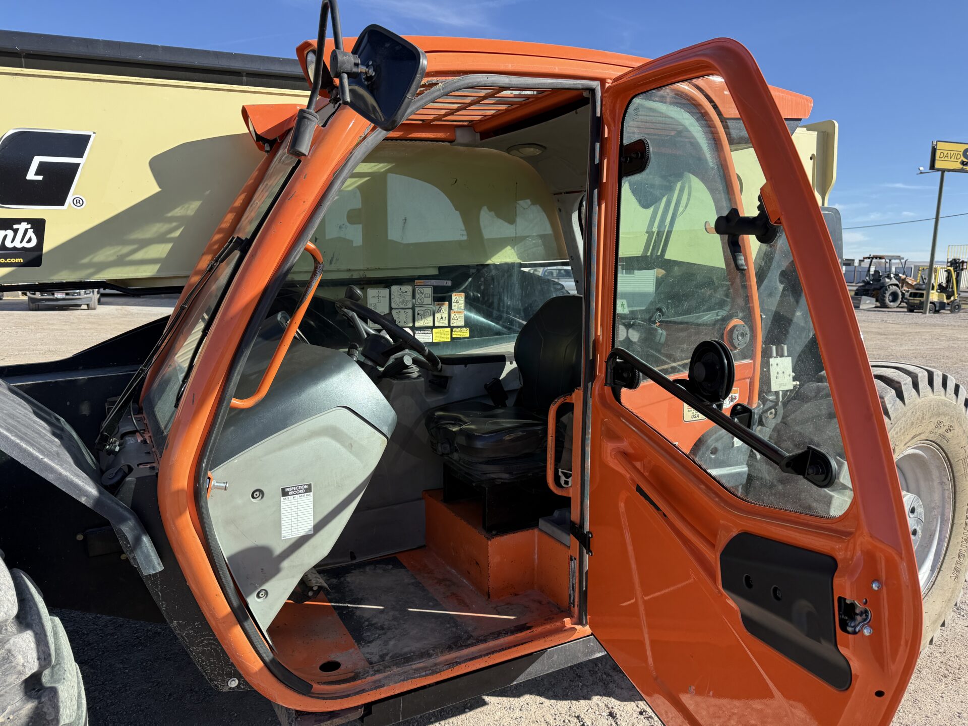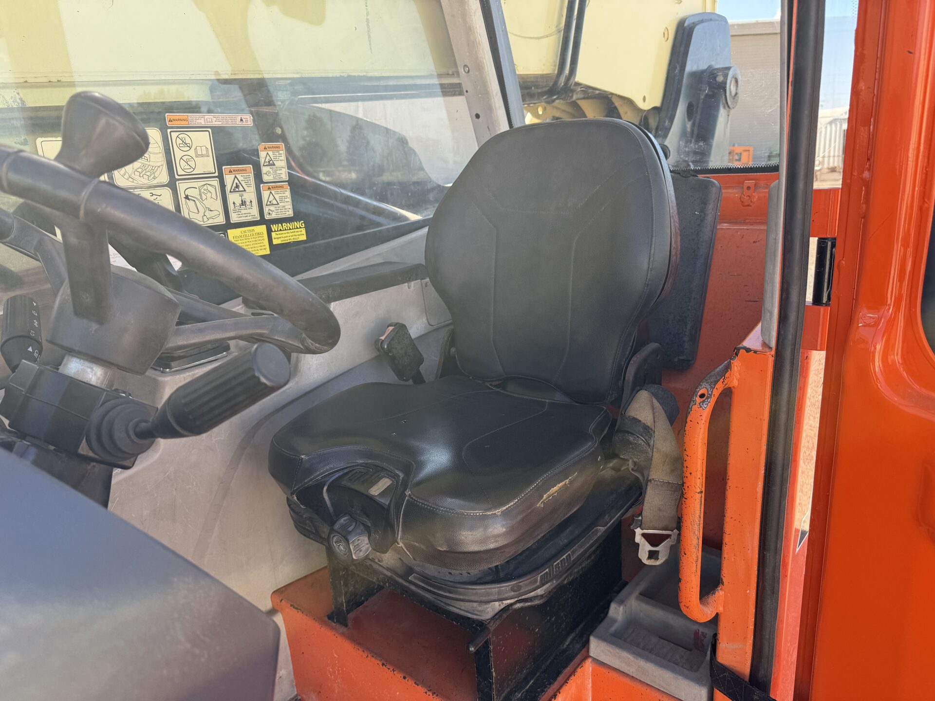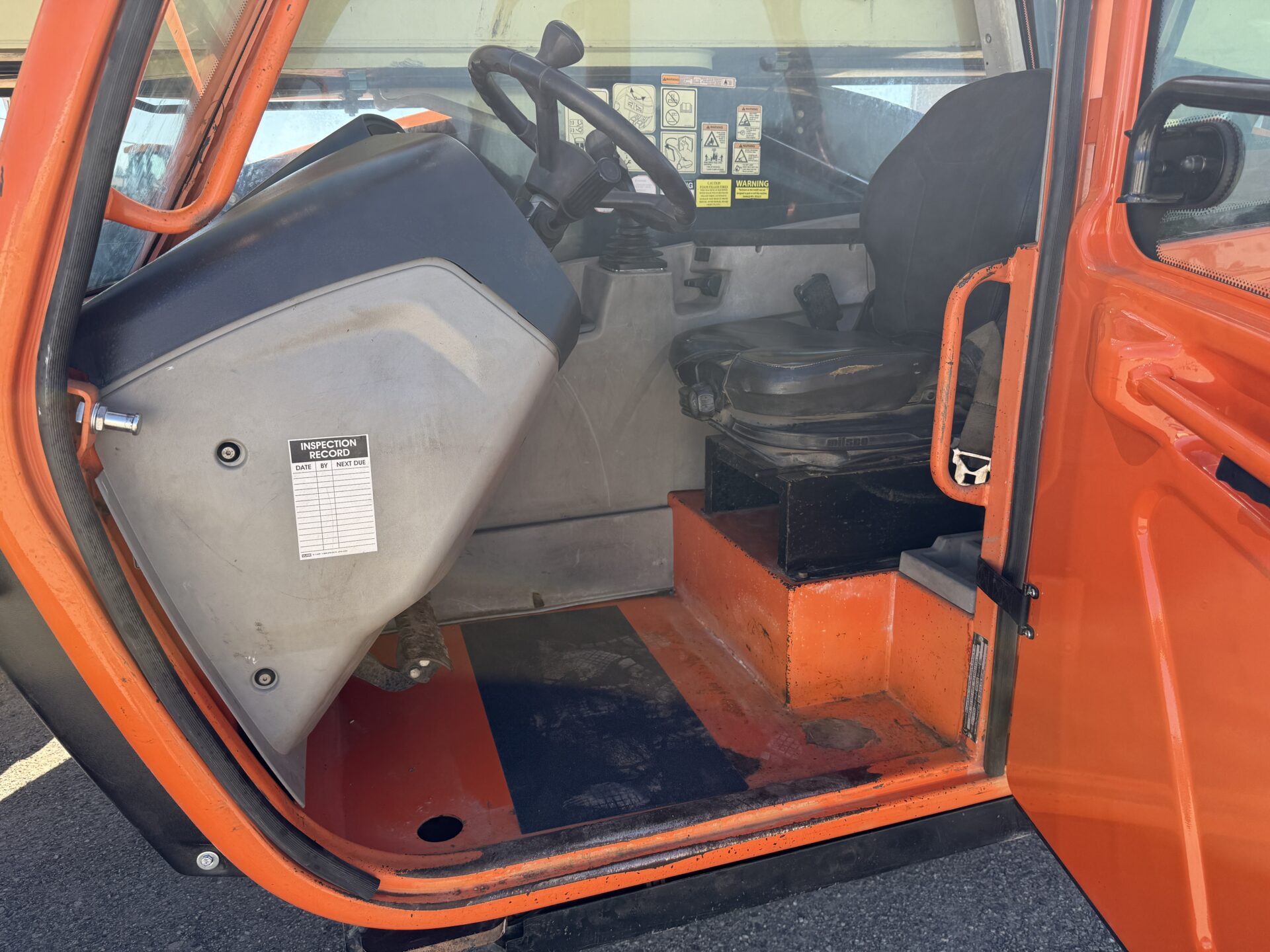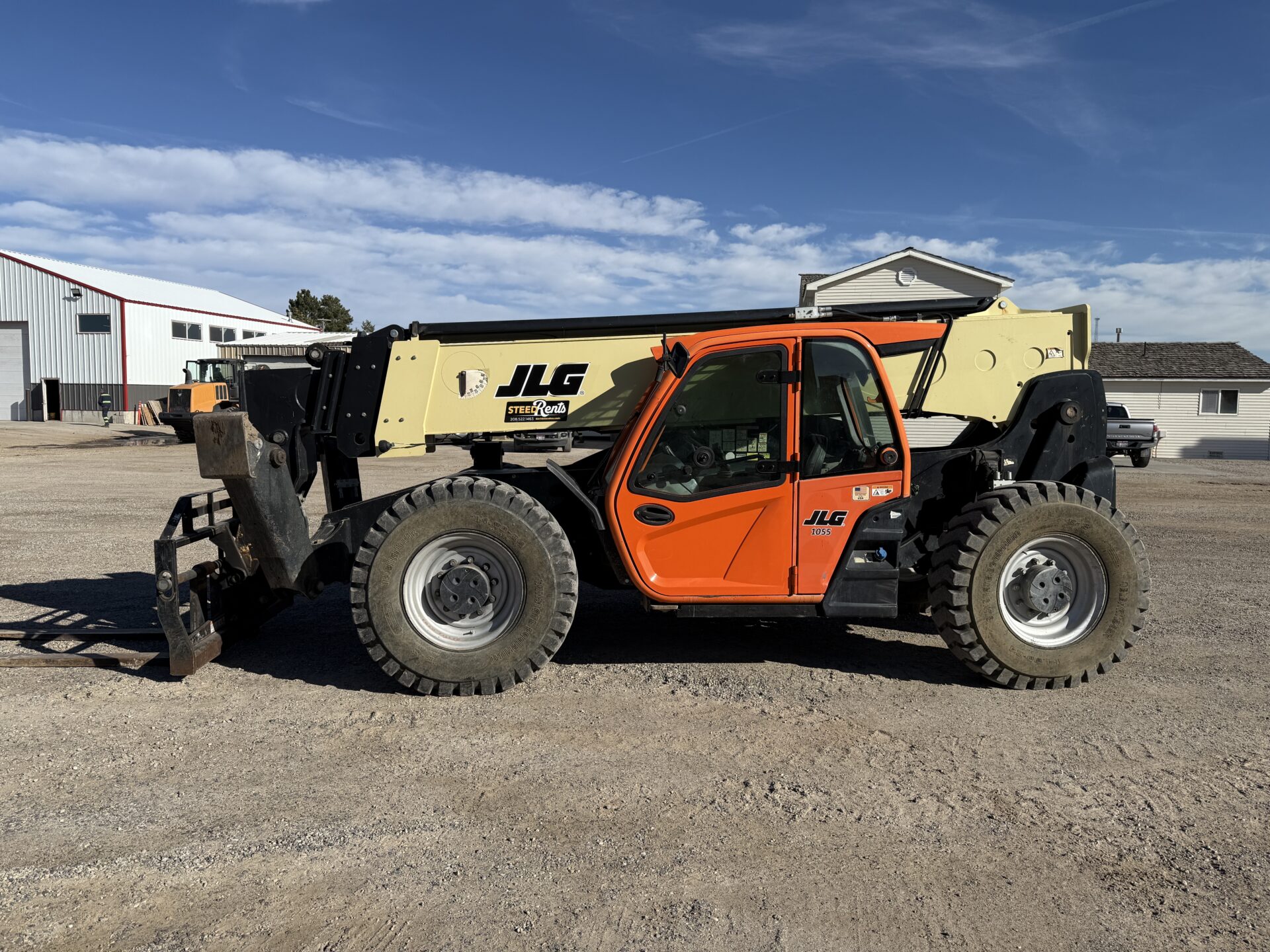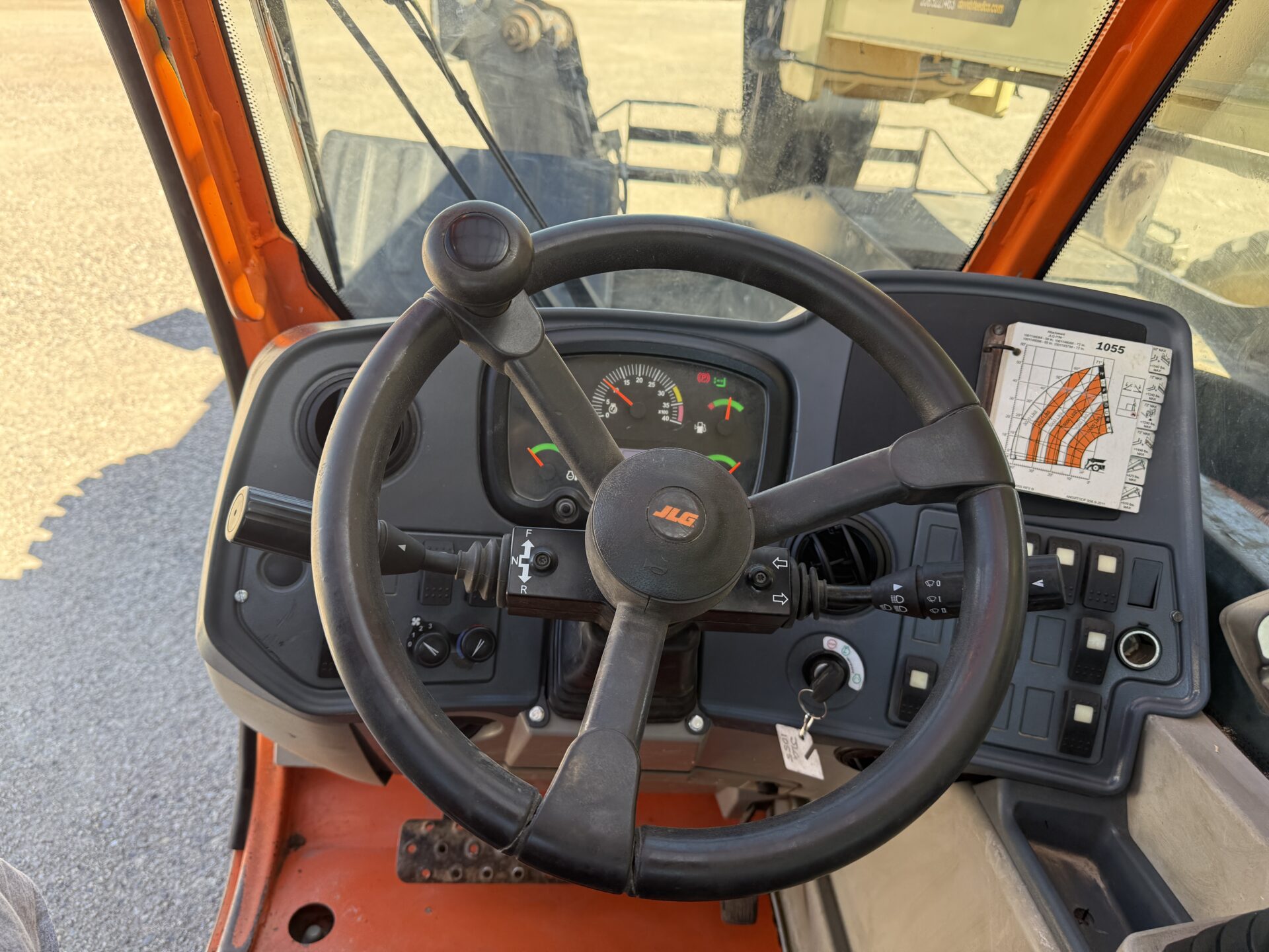 4398 hours, 10,000 lb. capacity, 55′ reach, OROPS, 4 x 4, 74″ carriage, foam filled tires, Cab, A/C, Heater