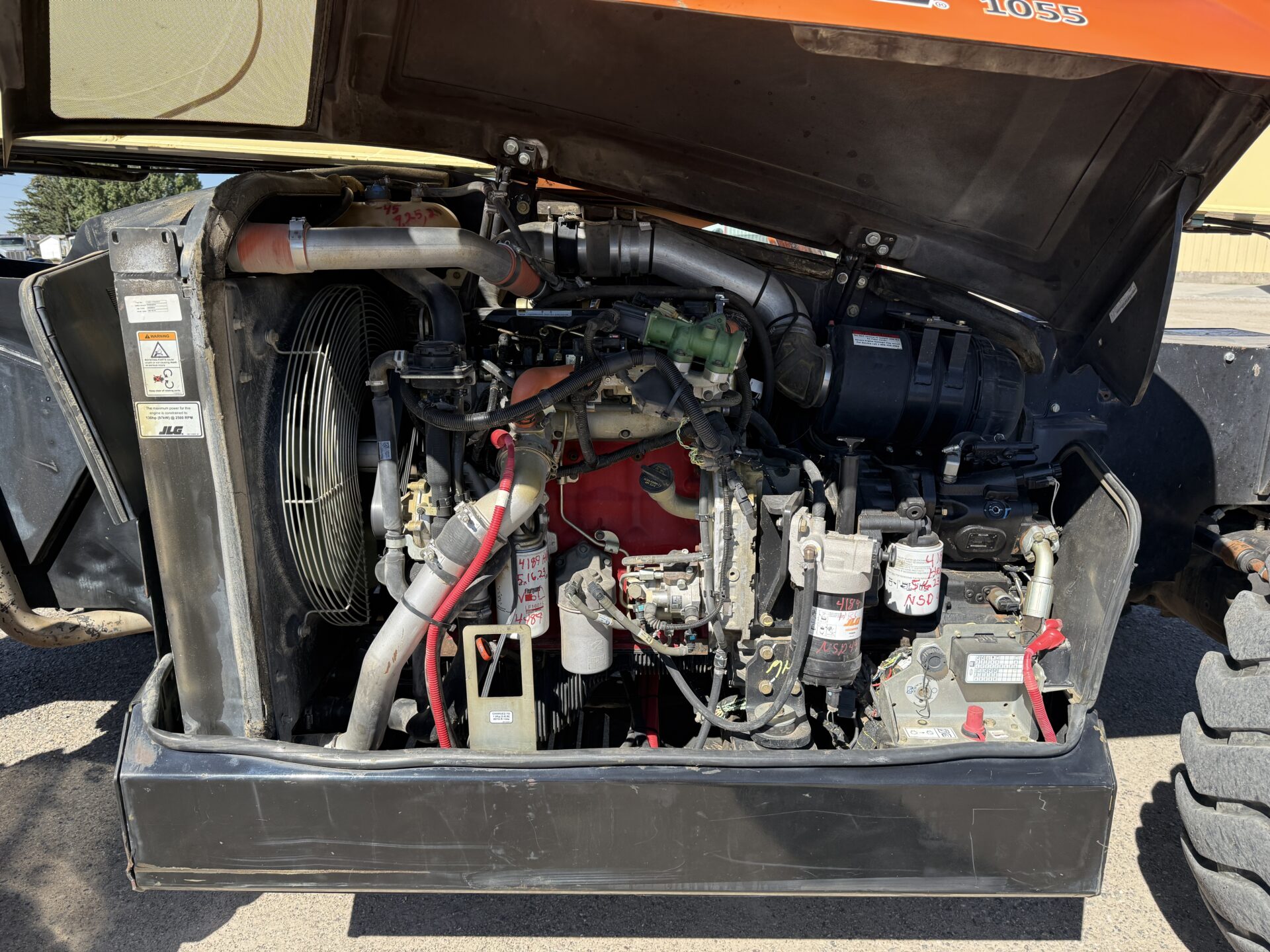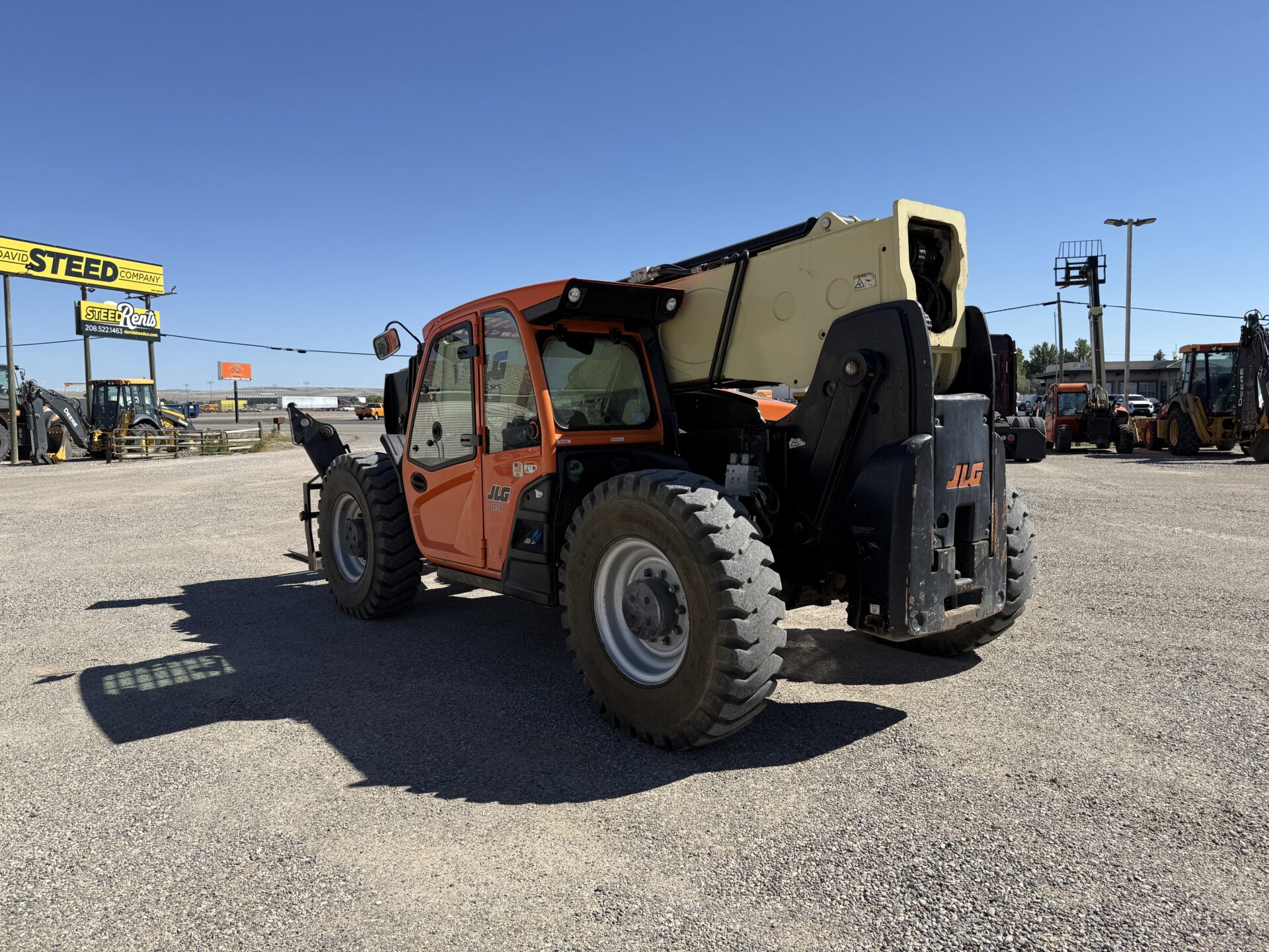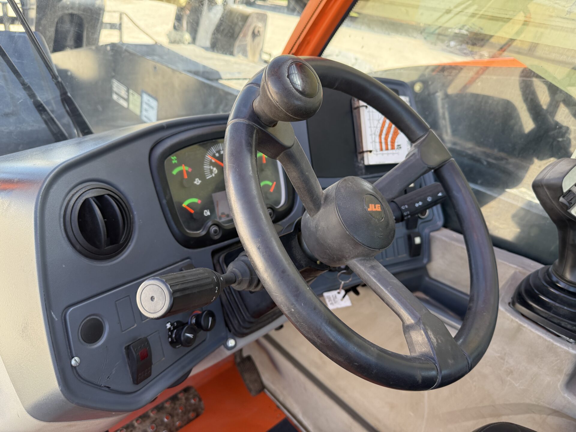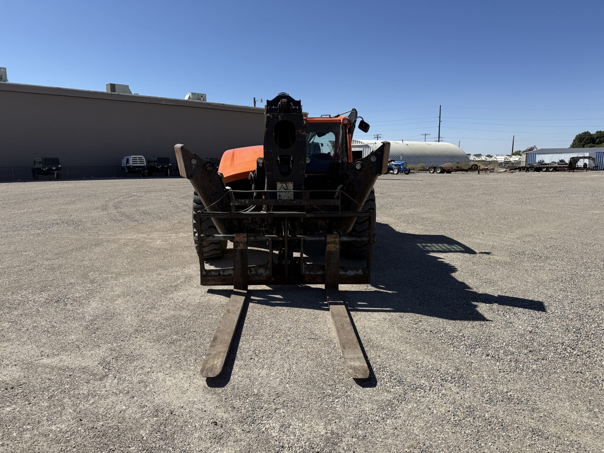 4398 hours, 10,000 lb. capacity, 55′ reach, OROPS, 4 x 4, 74″ carriage, foam filled tires, Cab, A/C, Heater