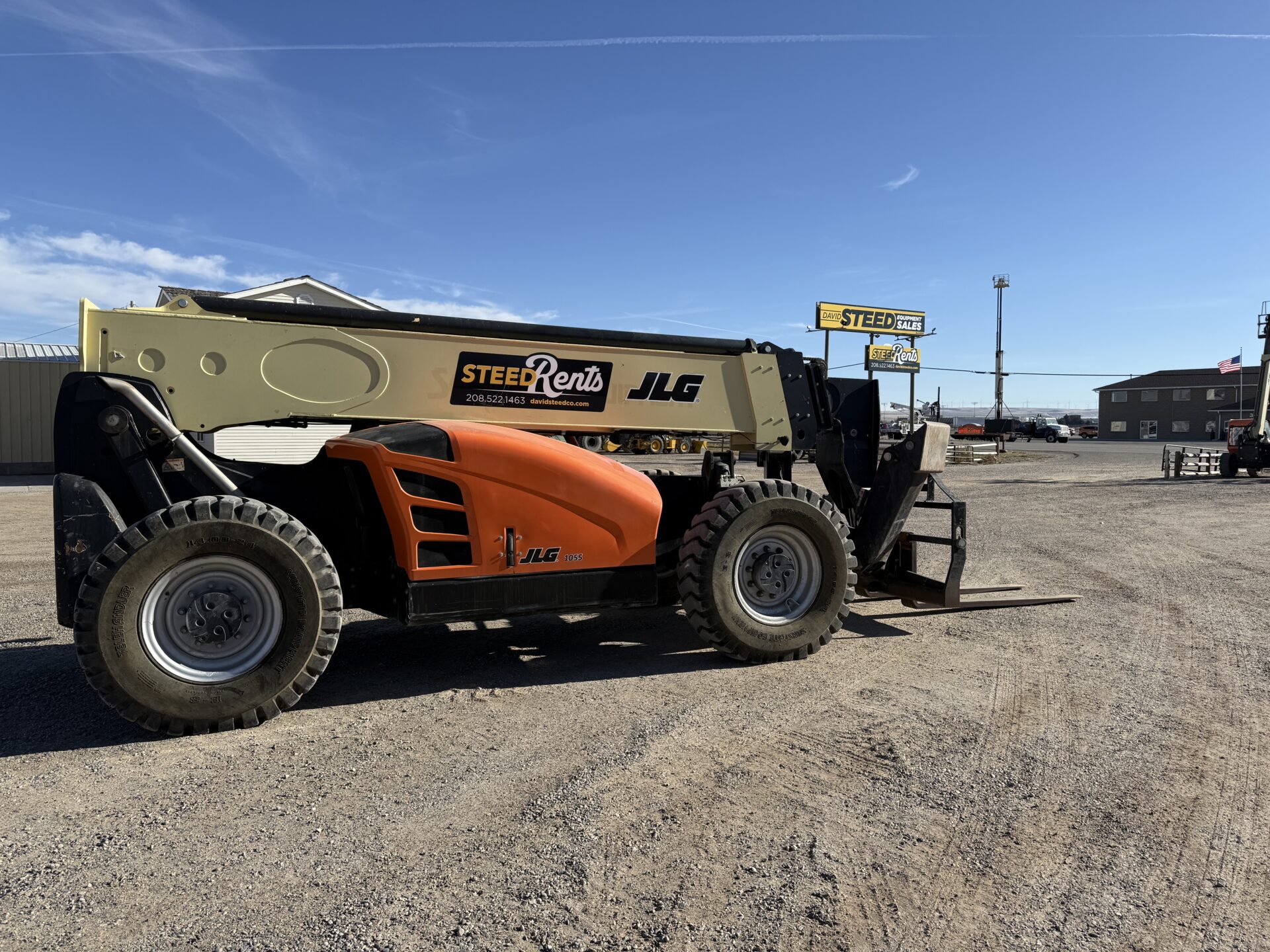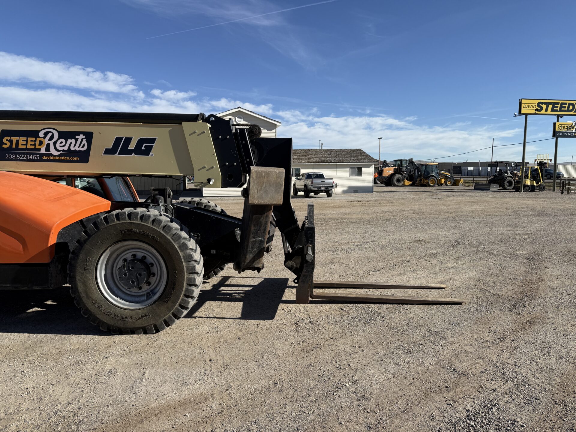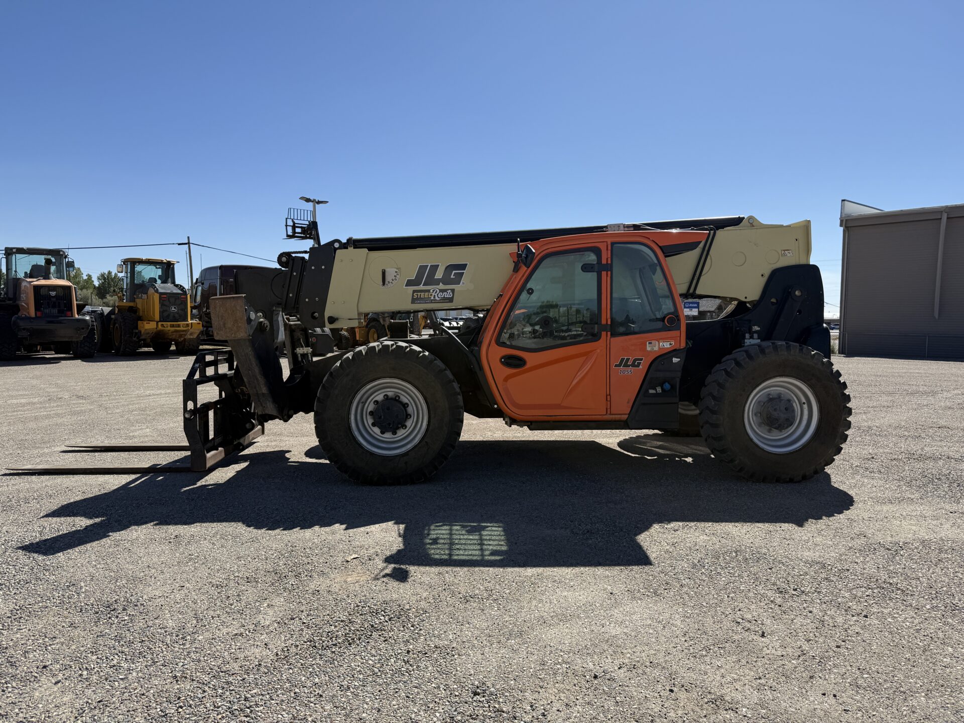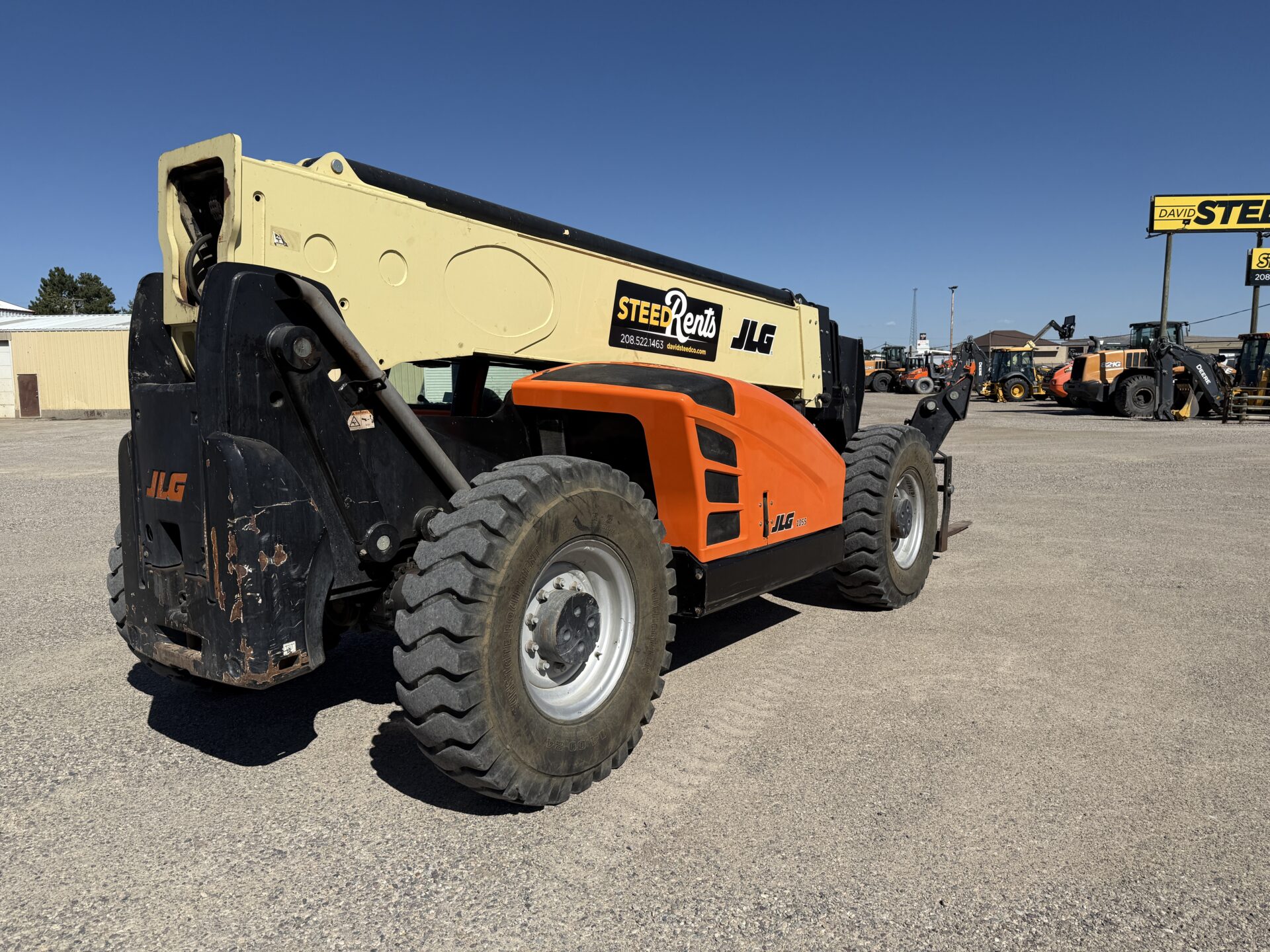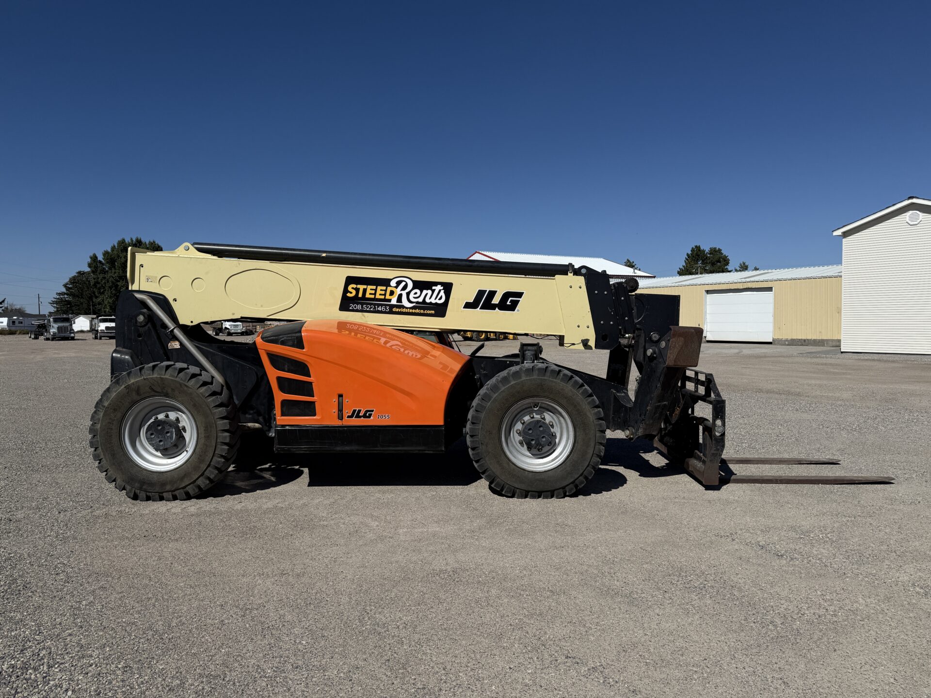 4398 hours, 10,000 lb. capacity, 55′ reach, OROPS, 4 x 4, 74″ carriage, foam filled tires, Cab, A/C, Heater