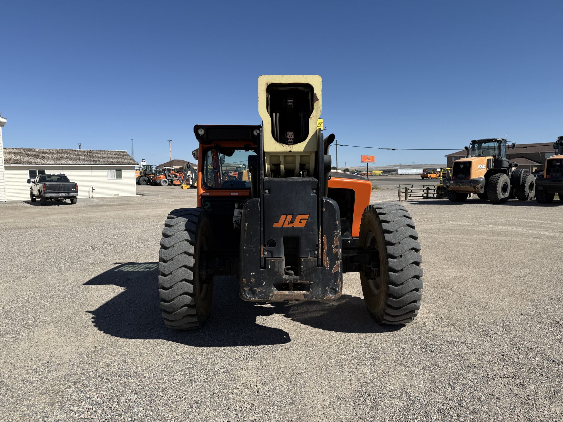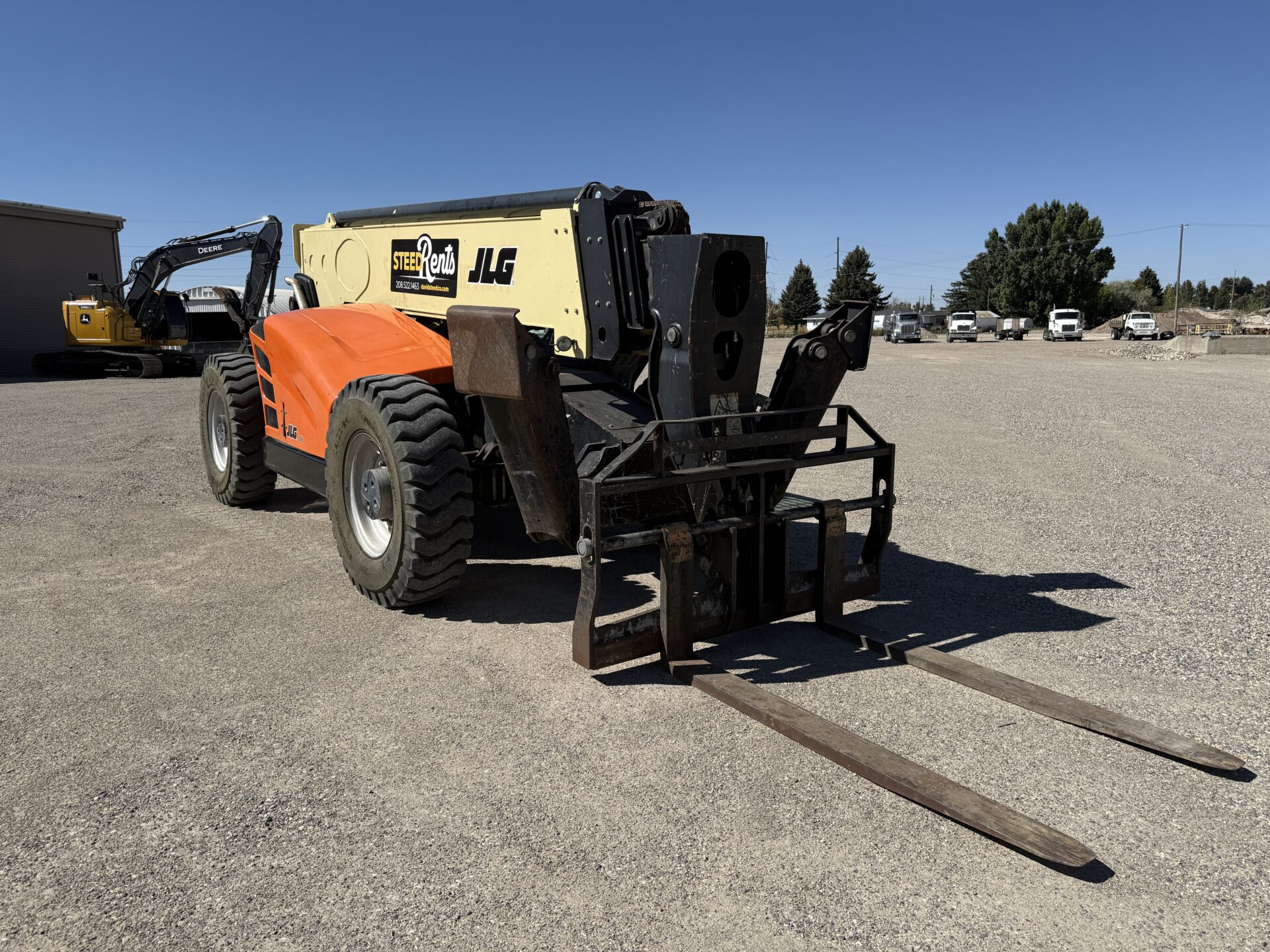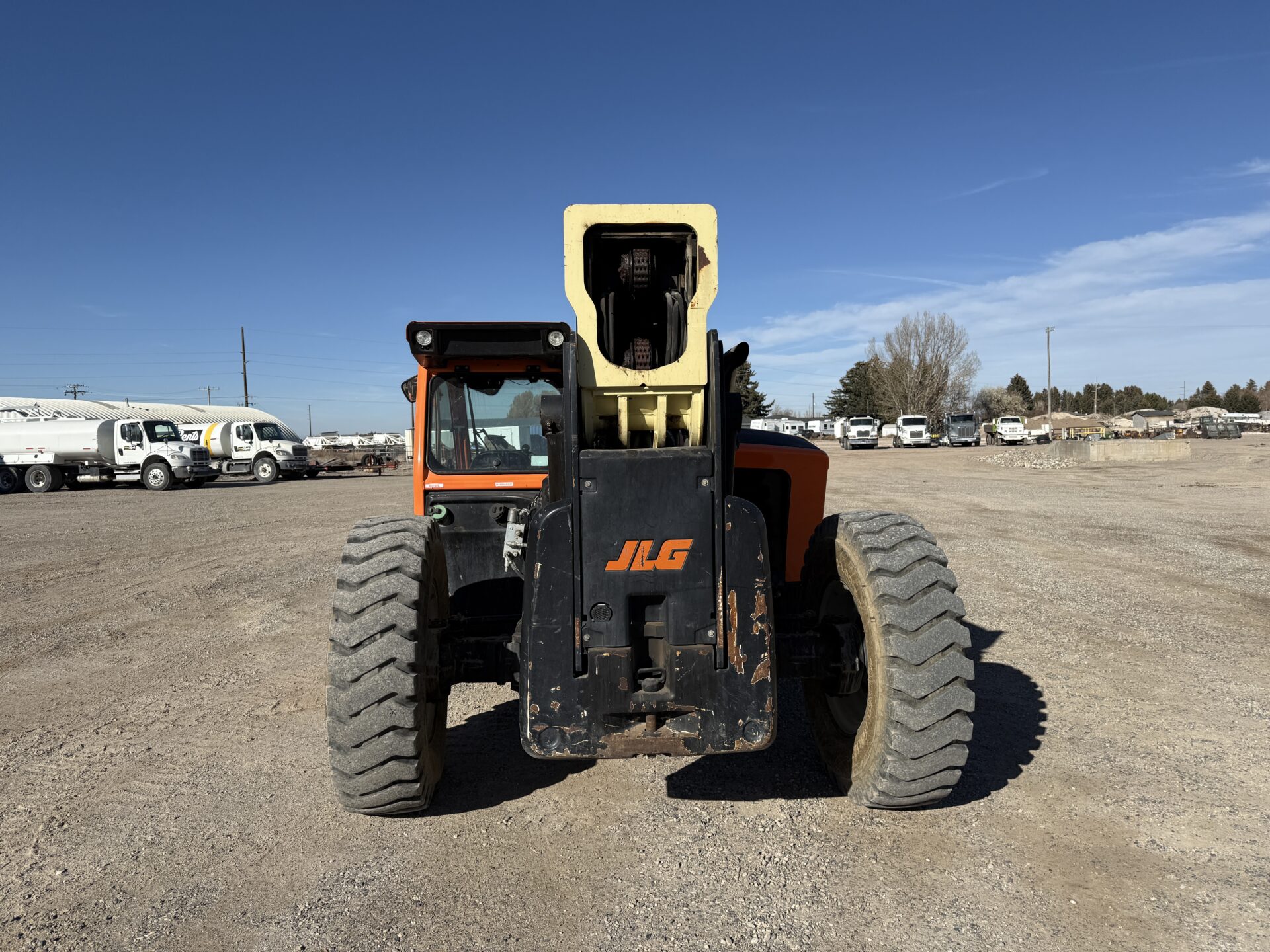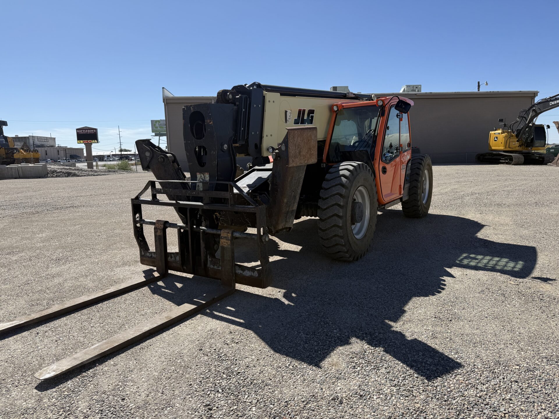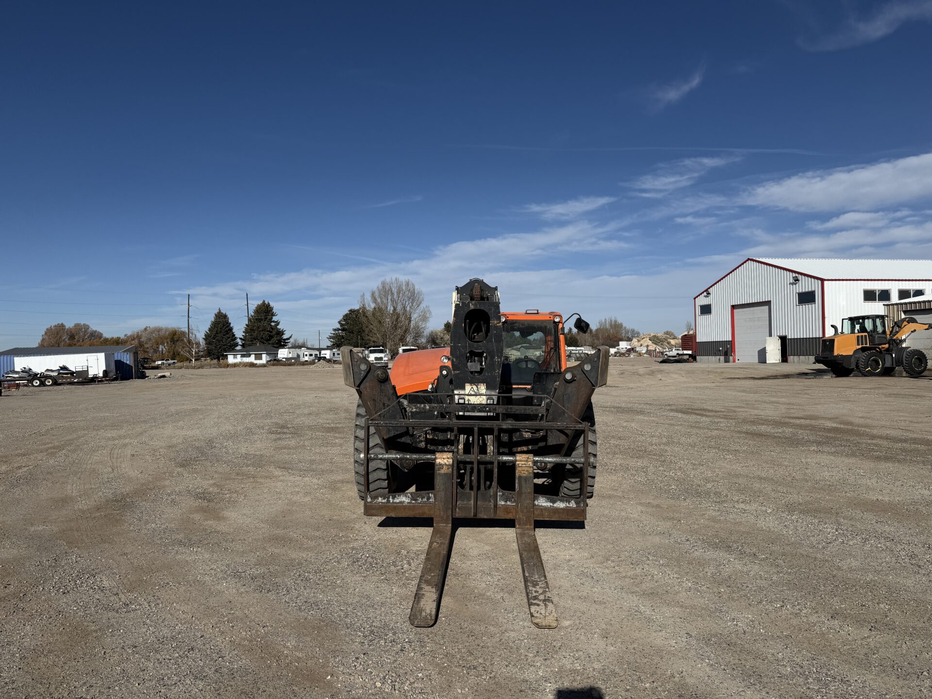 4398 hours, 10,000 lb. capacity, 55′ reach, OROPS, 4 x 4, 74″ carriage, foam filled tires, Cab, A/C, Heater