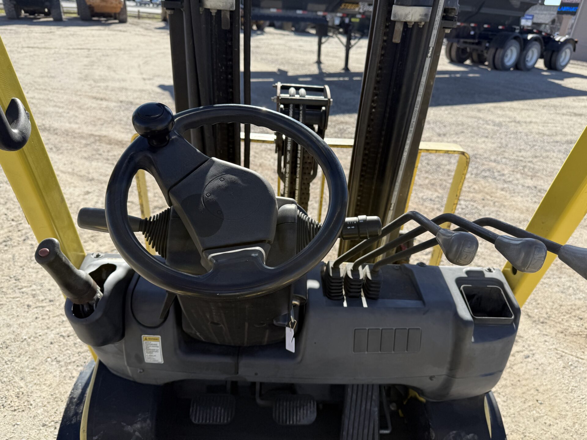 2782 hrs, 189″- 3 stage mast with free lift, LPG engine, 6-degree forward/6-degree back tilt, 9100lbs operating weight.