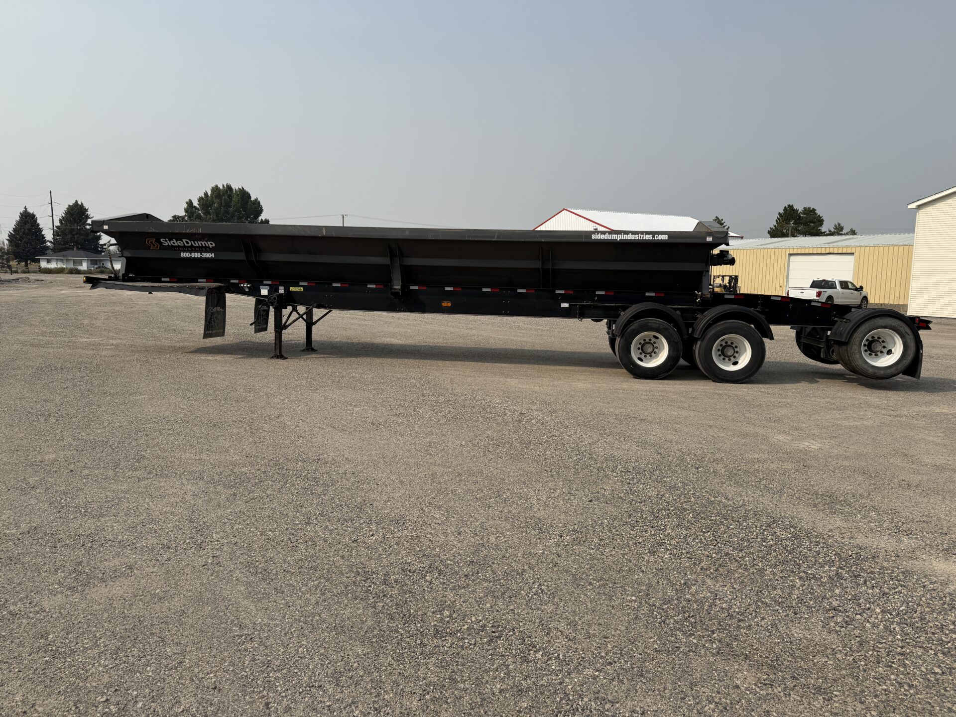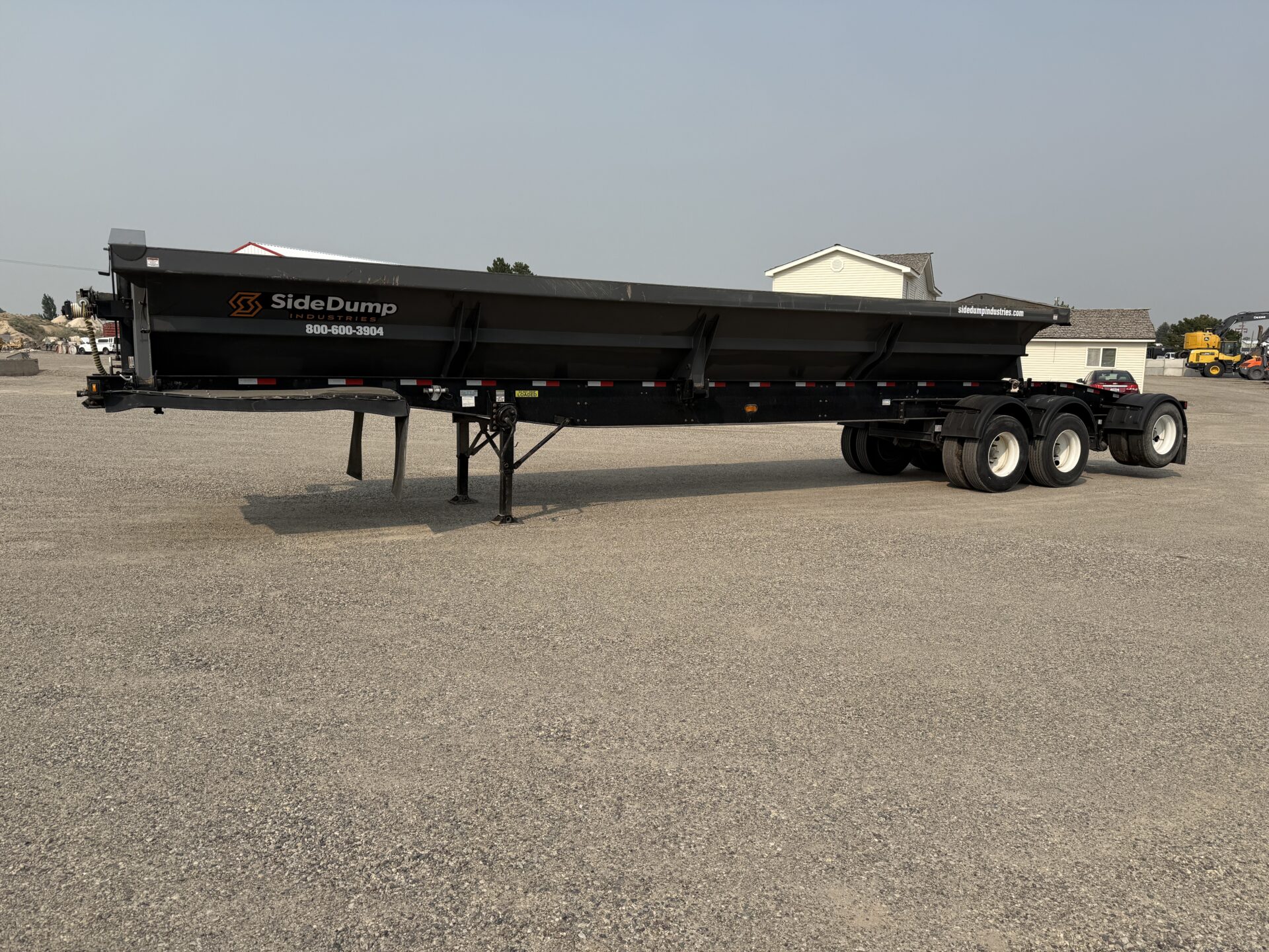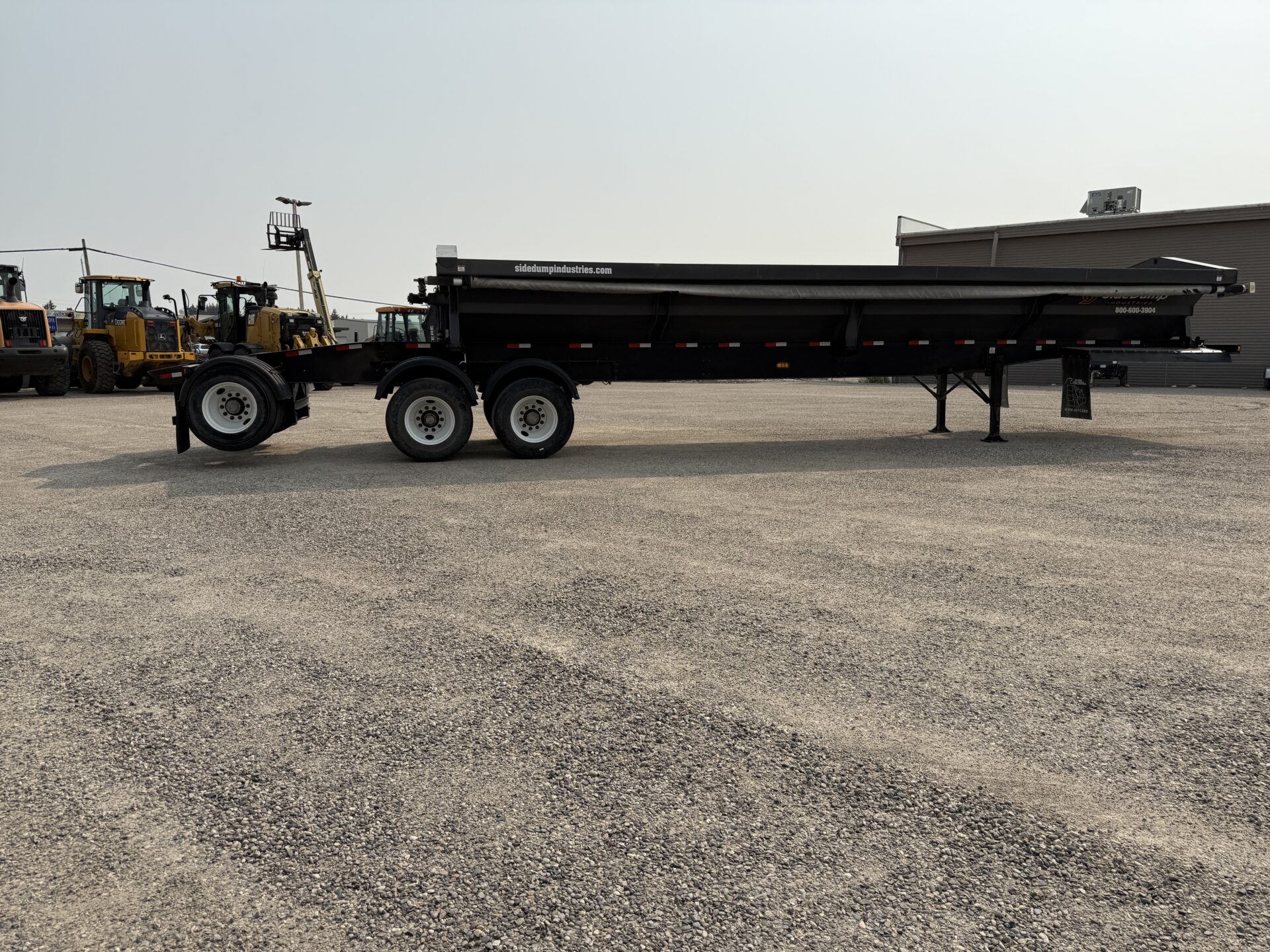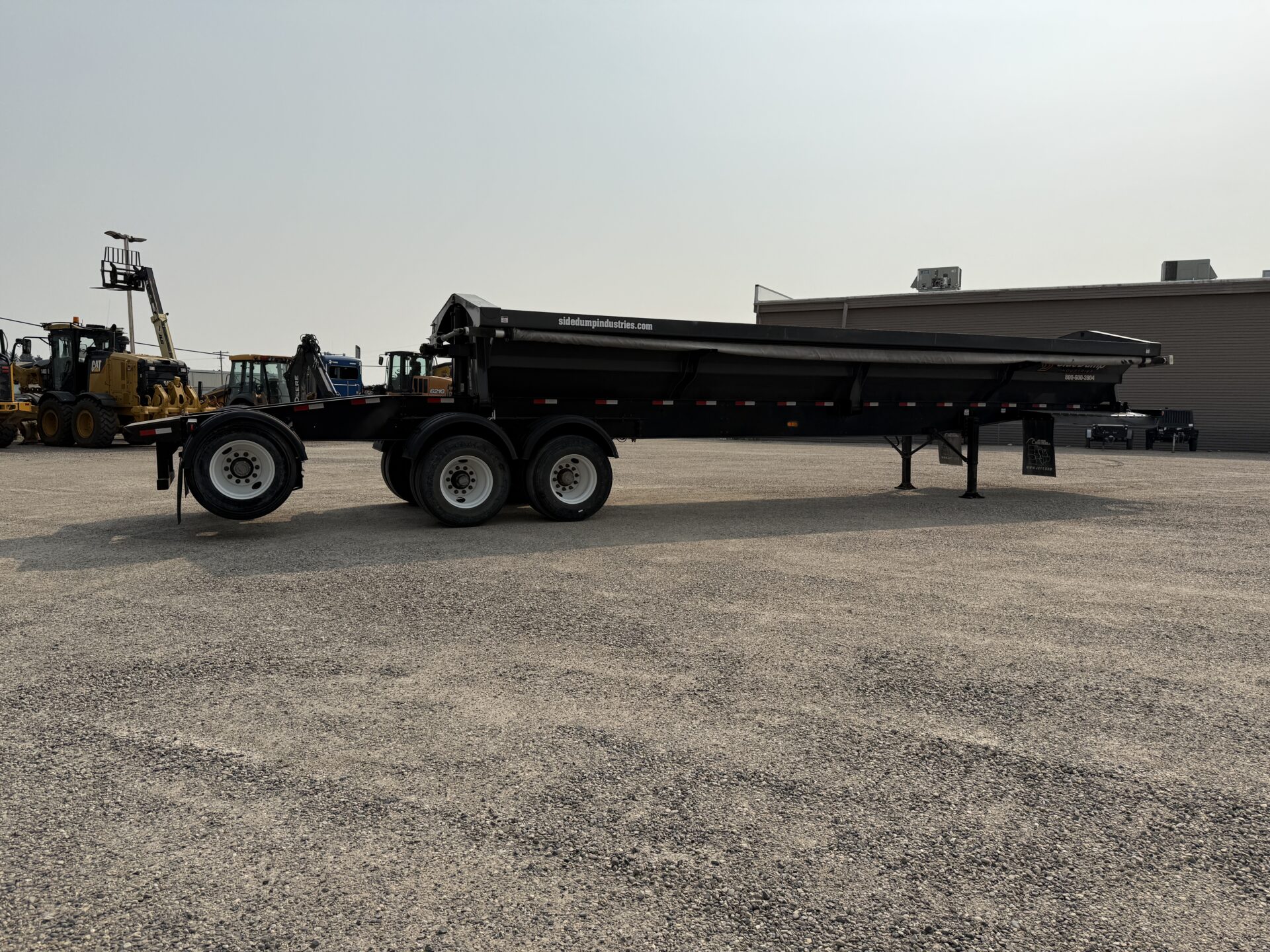 Side Dump Trailer – 36 ft. tub length, air suspension, tarp, super 3rd drop axle