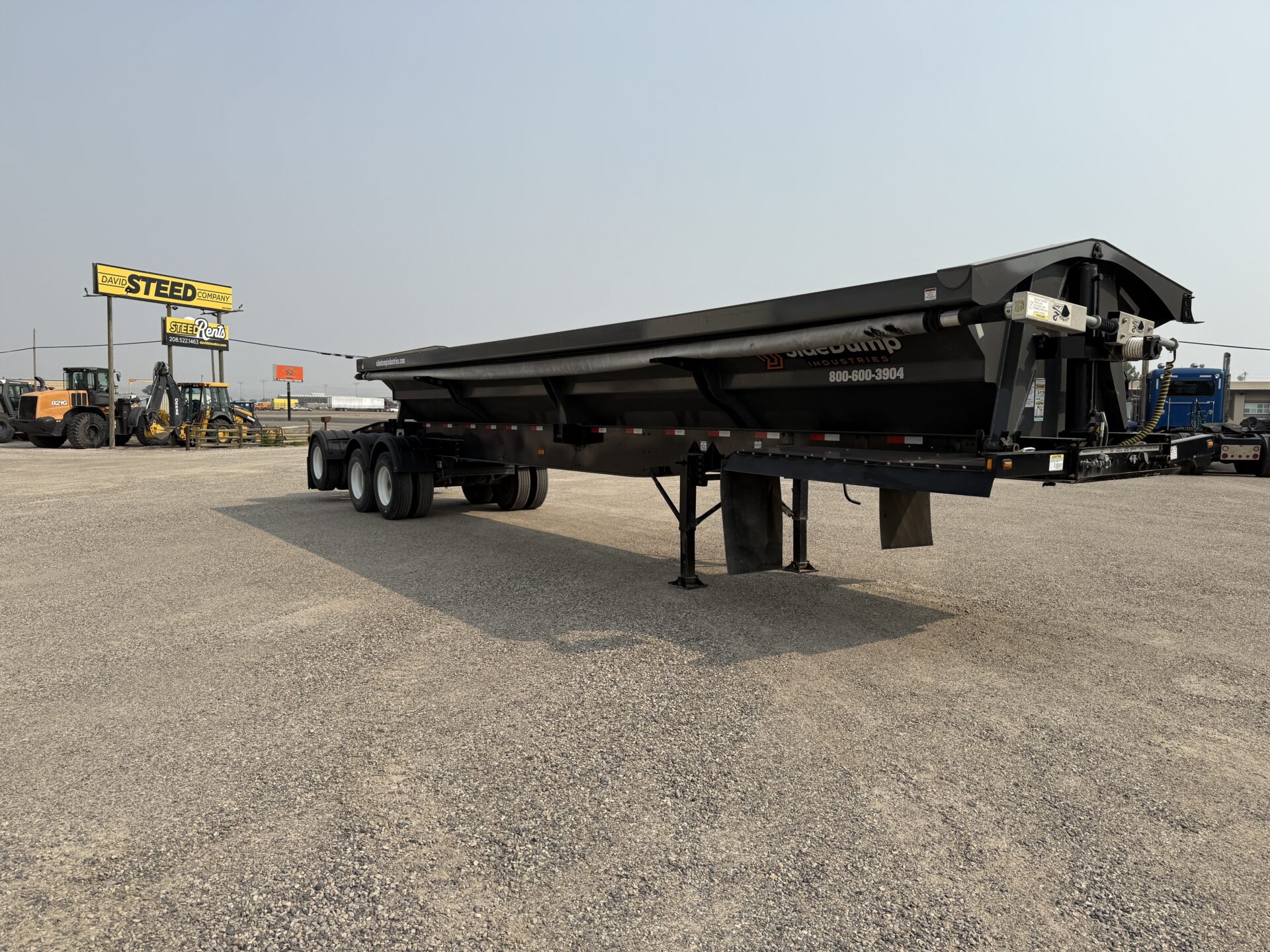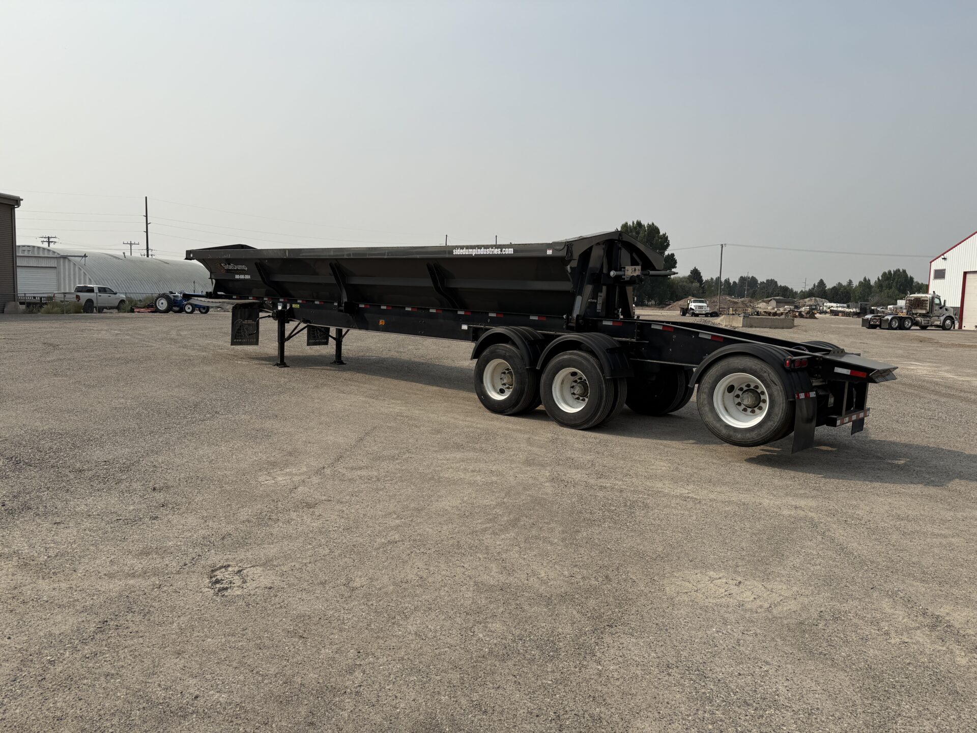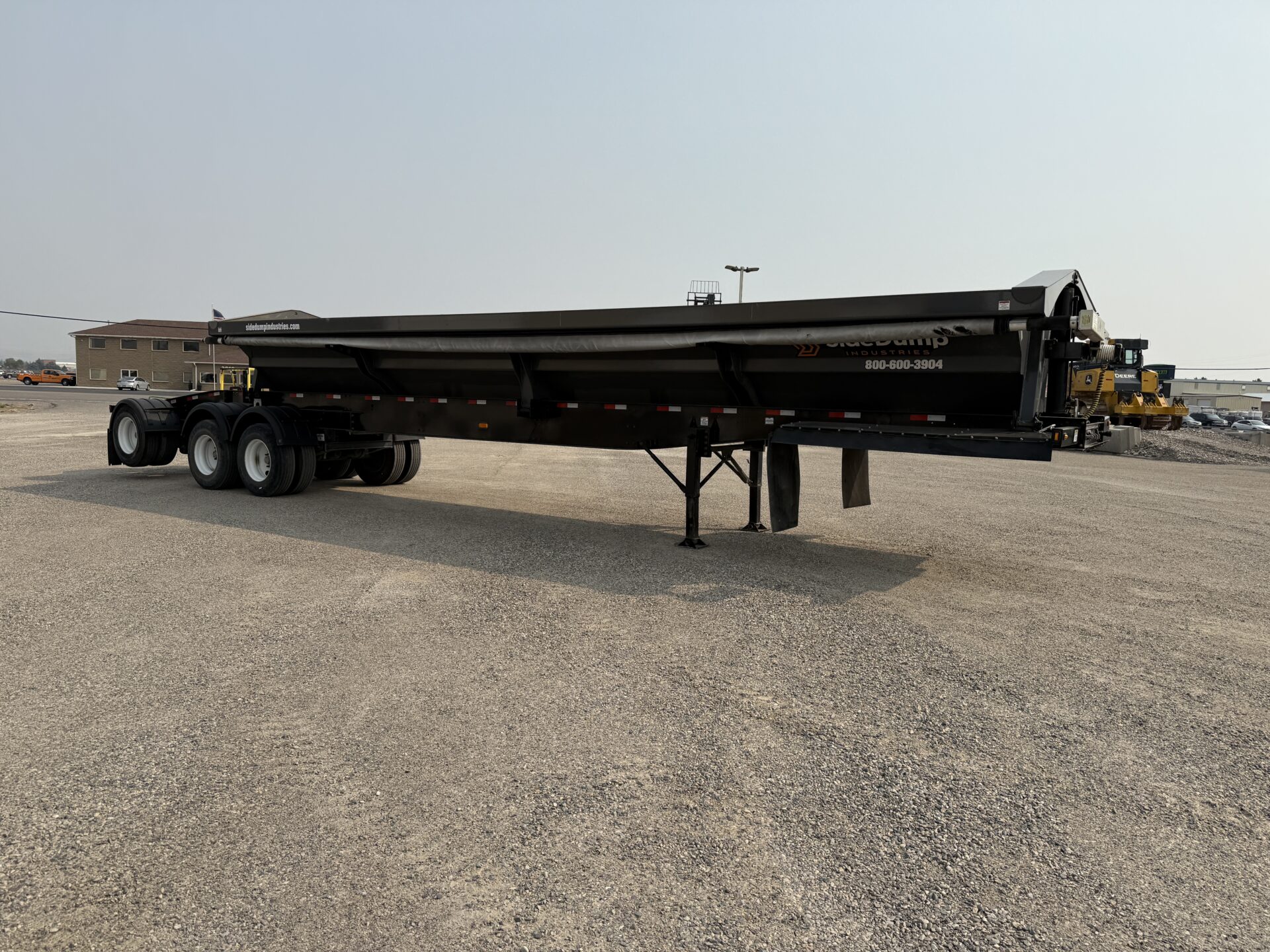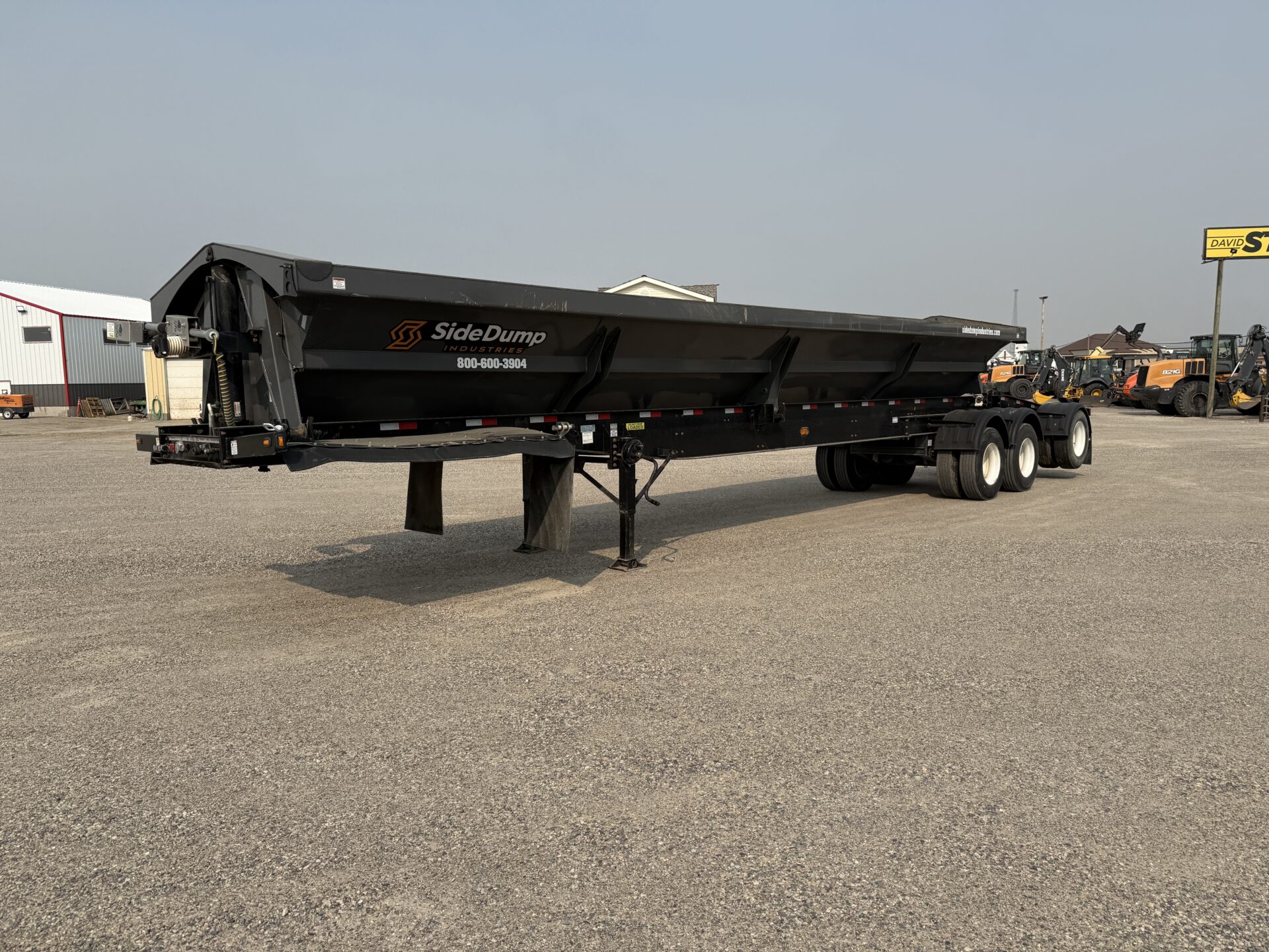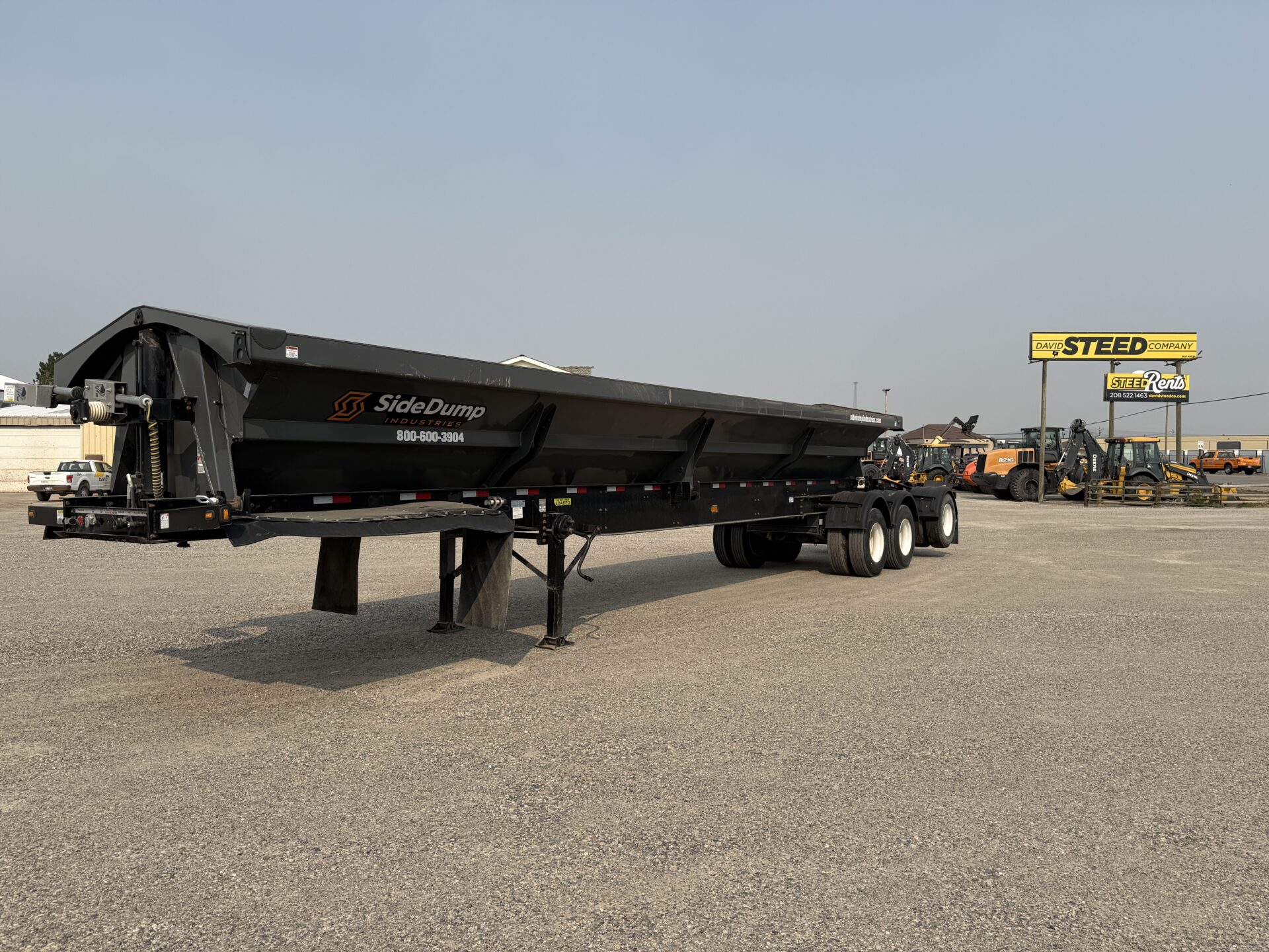 Side Dump Trailer – 36 ft. tub length, air suspension, tarp, super 3rd drop axle