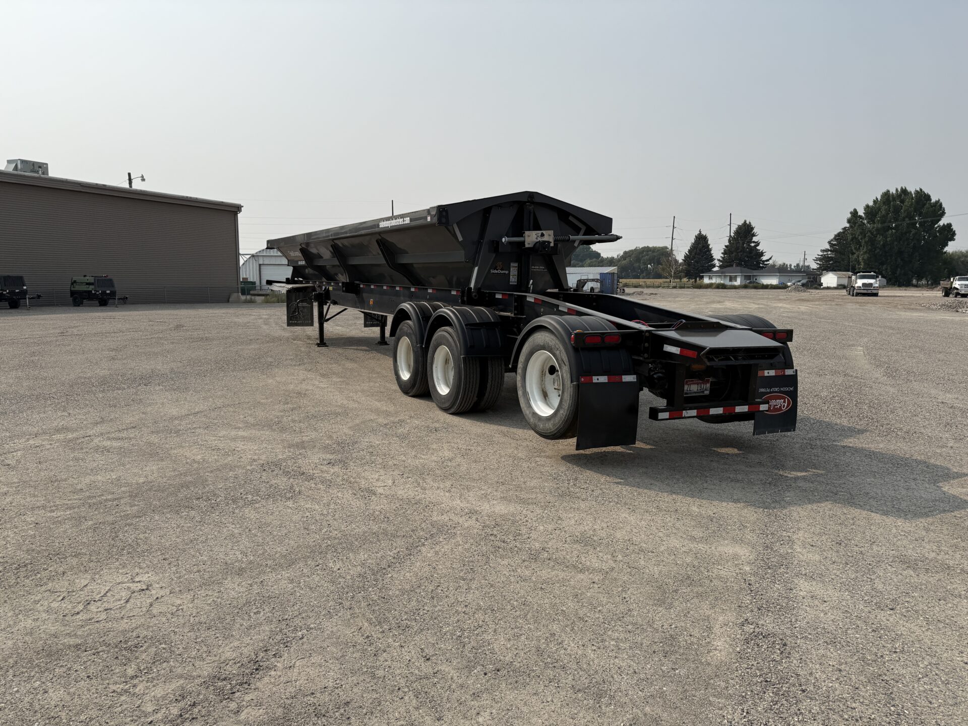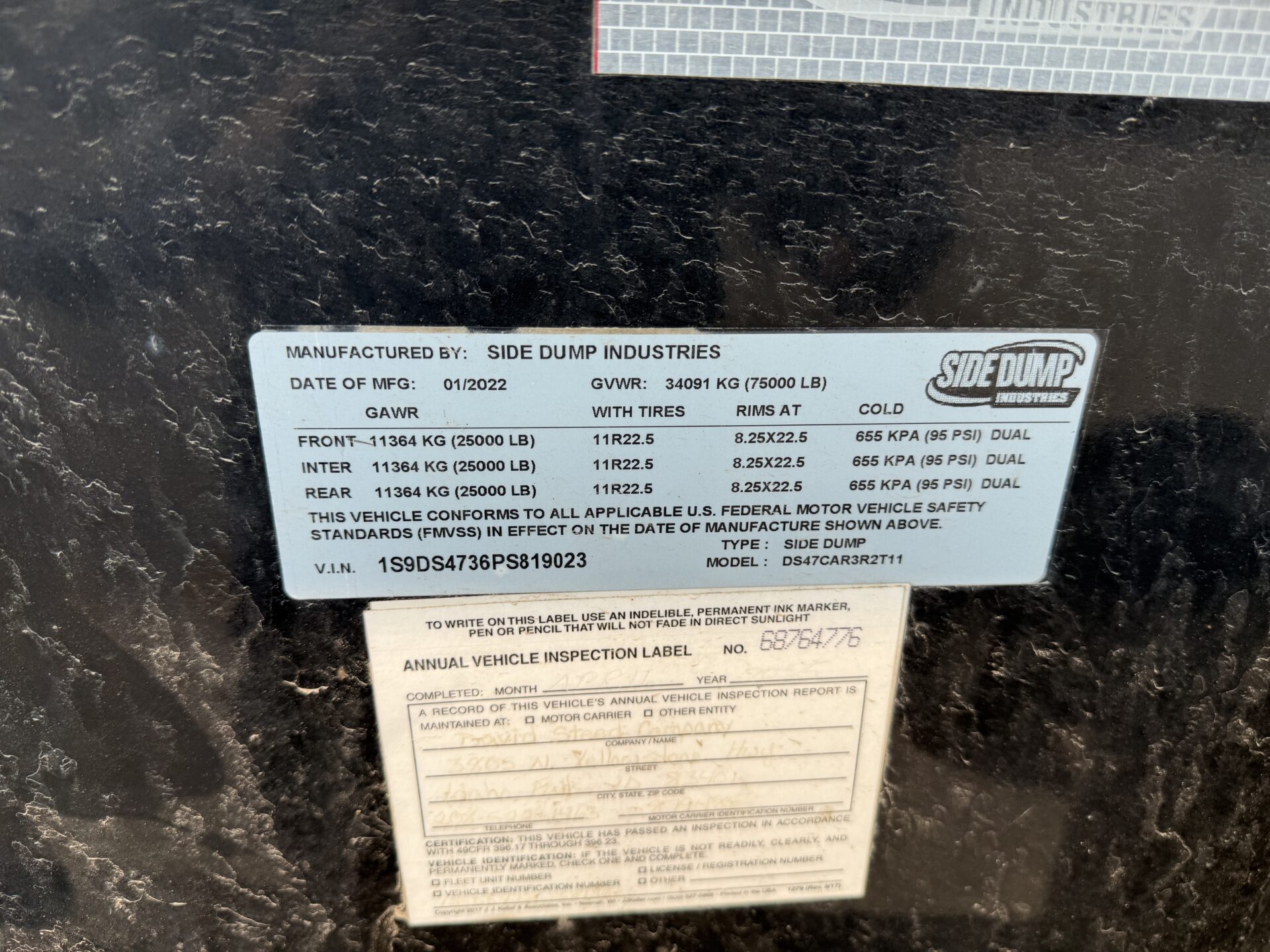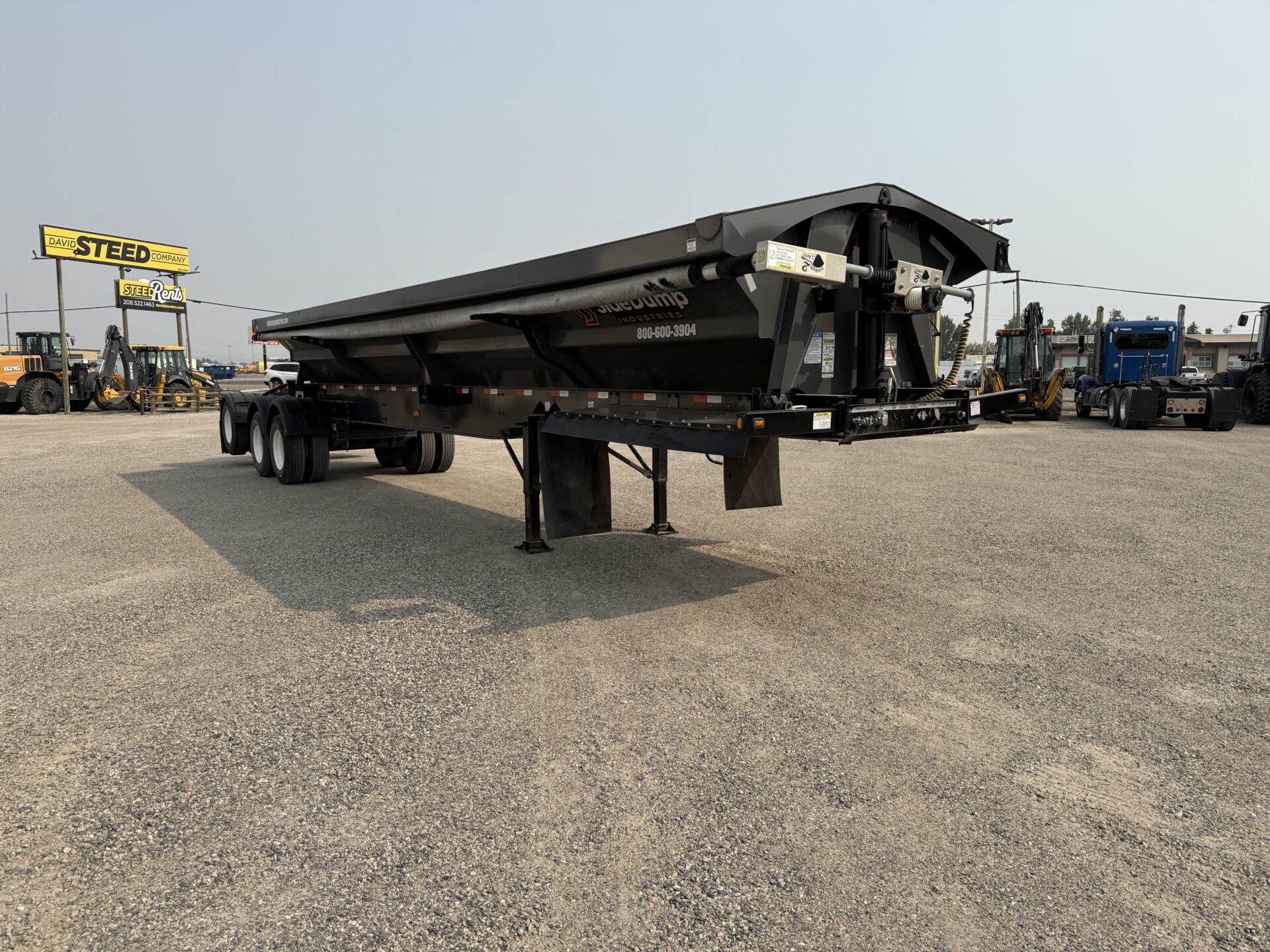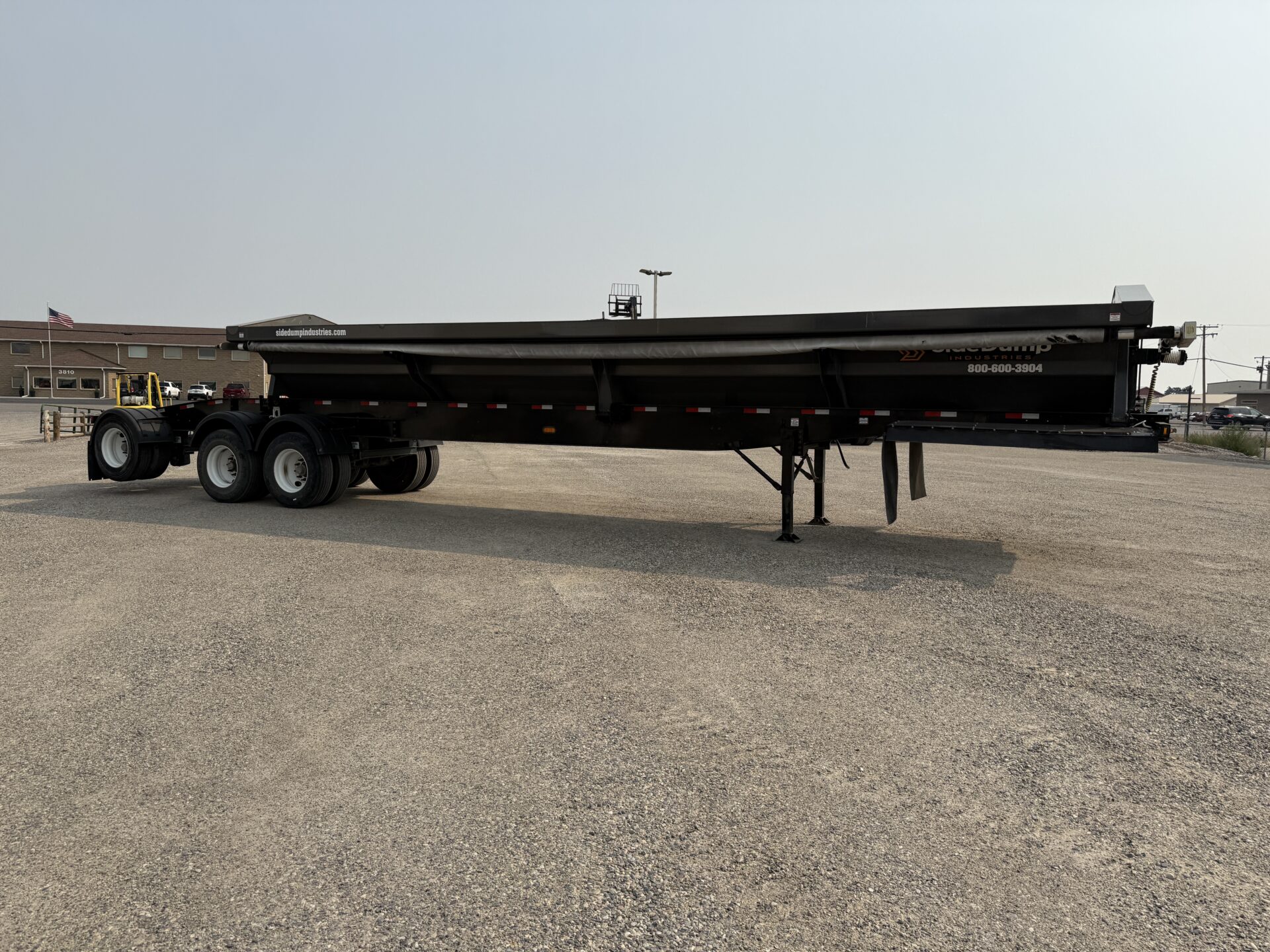 Side Dump Trailer – 36 ft. tub length, air suspension, tarp, super 3rd drop axle